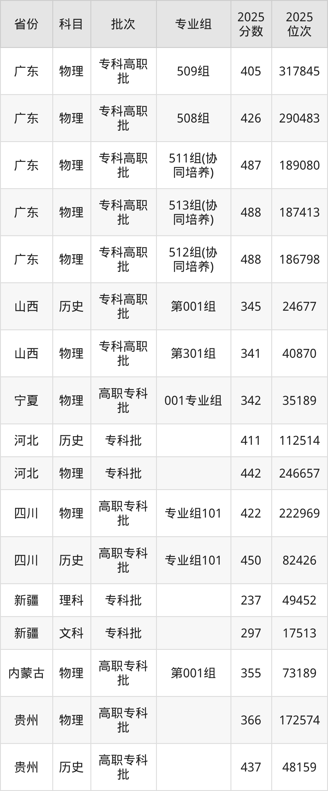 广东交通职业技术学院510组:2025年投档录取最低分为361分,录取最低位次为364401名。