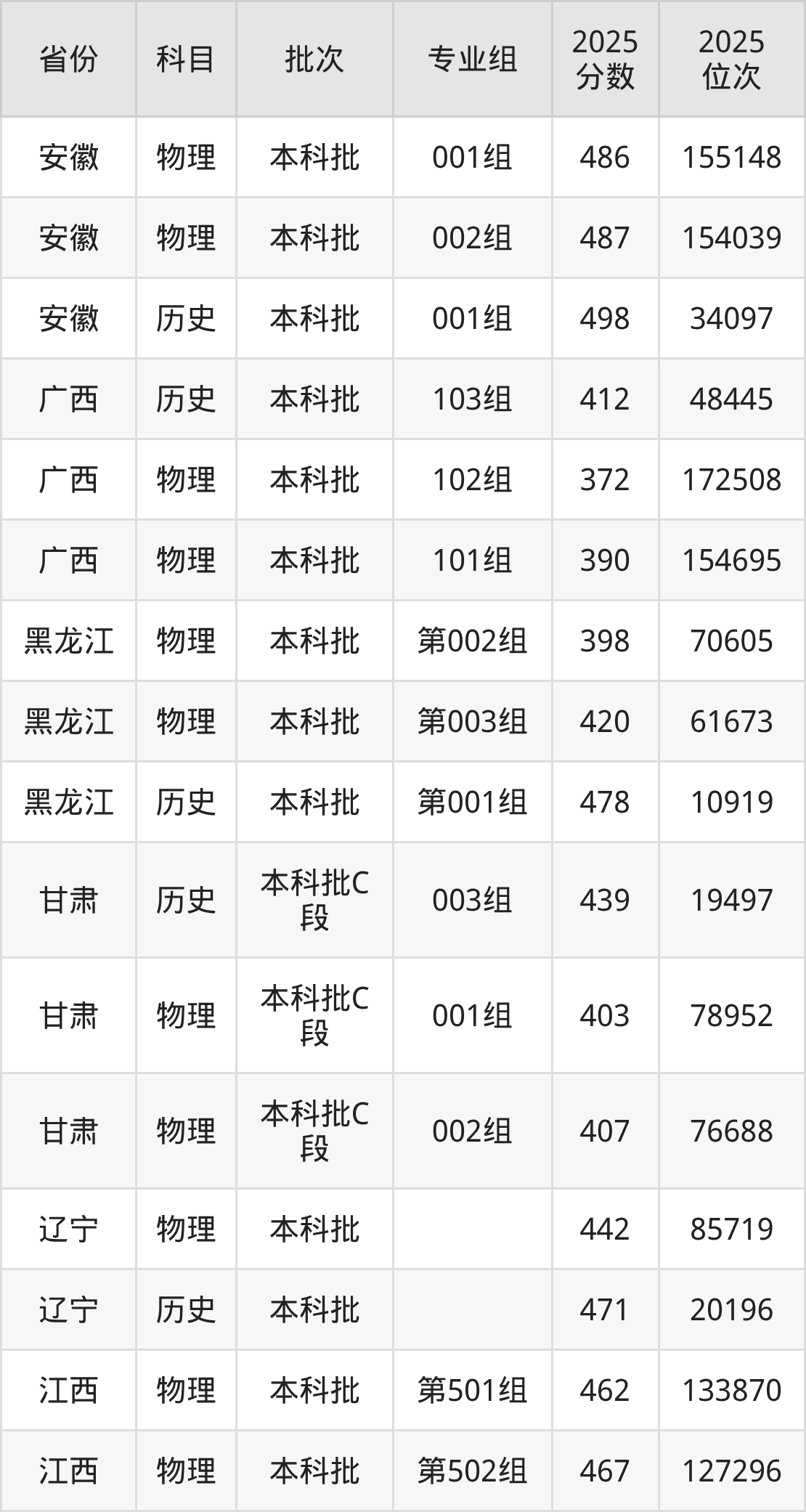 2025年投档录取最低分为467分,录取最低位次为35184名。