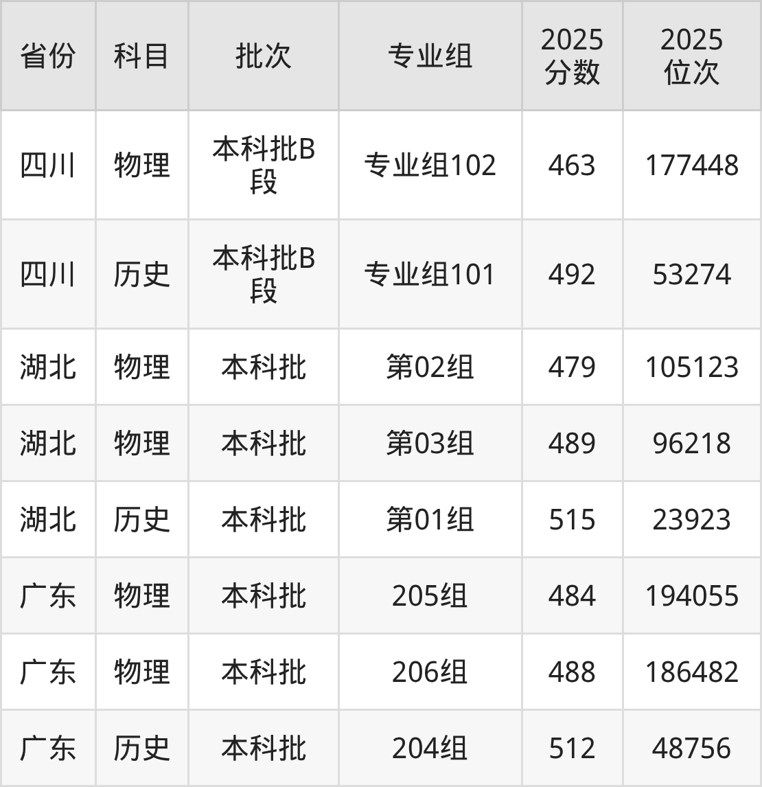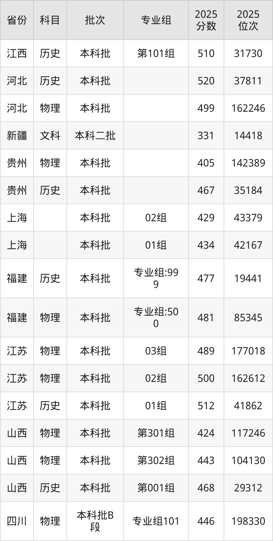 2025年投档录取最低分为405分,录取最低位次为142389名。