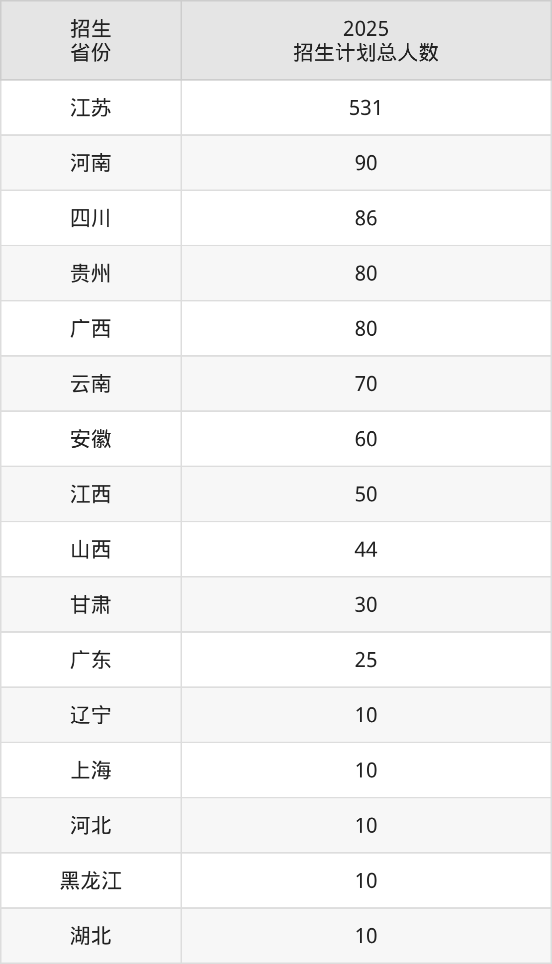 2025年江苏科技大学苏州理工学院面向全国18个省市开展本科招生;招生专业共18个,招生人数共1213人。2025年在江苏省招生计划总人数是531人,其中,江苏科技大学苏州理工学院在江苏省招生人数最多的是电气工程及其自动化。江苏科技大学苏州理工学院在各省具体招生人数情况如下表。