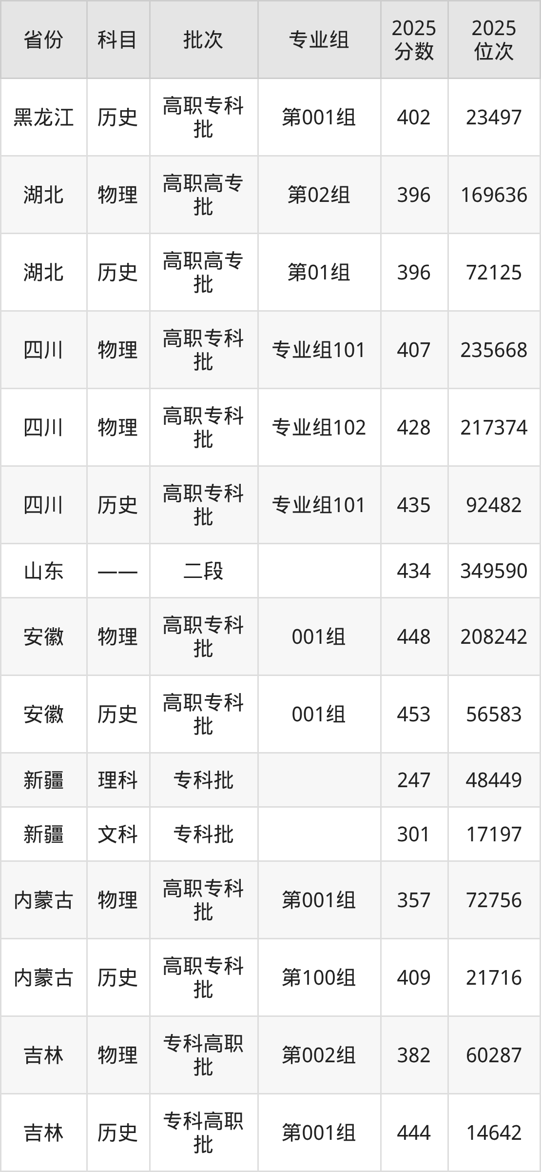 天津铁道职业技术学院第001组:2025年投档录取最低分为402分,录取最低位次为23497名。