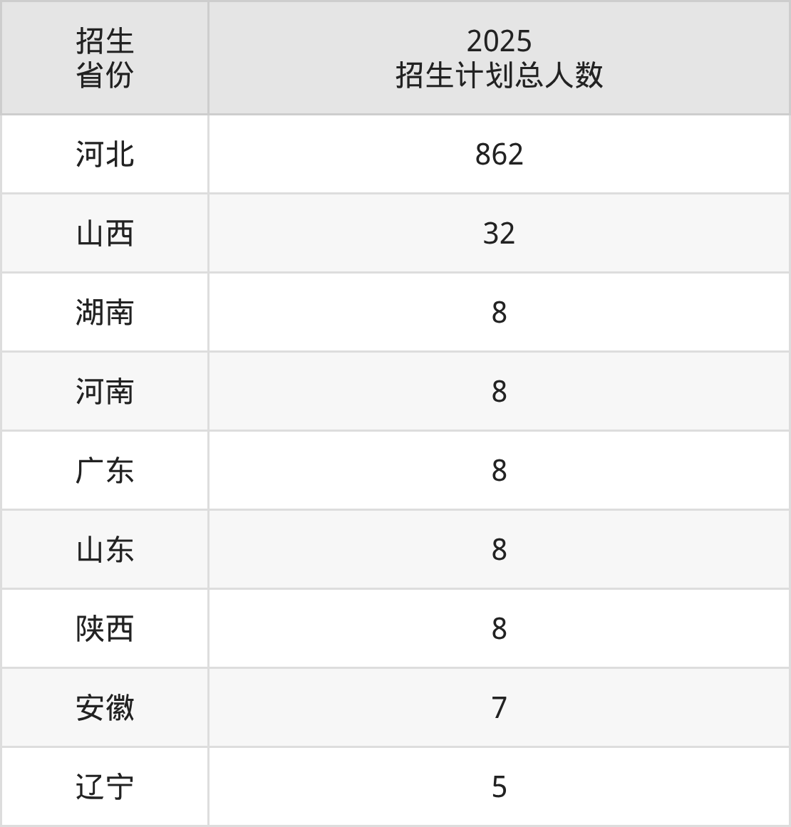 2025年石家庄职业技术学院面向全国9个省市开展专科招生;招生专业共50个,招生人数共946人。2025年在河北省招生计划总人数是862人,其中,石家庄职业技术学院在河北省招生人数最多的是智能建造技术。石家庄职业技术学院在各省具体招生人数情况如下表。