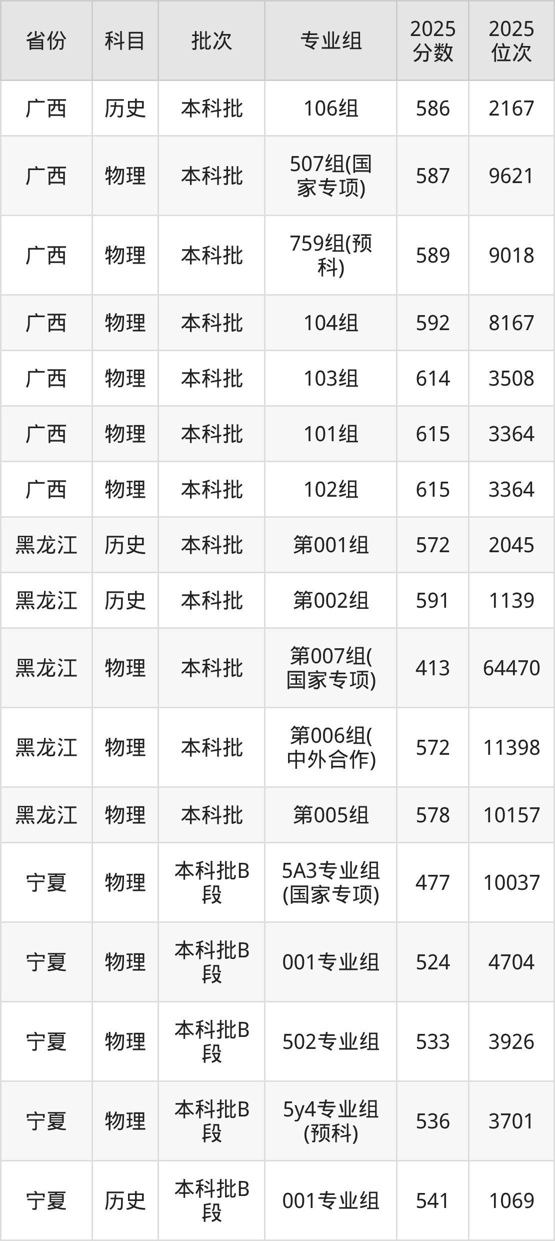 武汉理工大学008专业组(国家专项计划):2025年投档录取最低分为571分,录取最低位次为7626名。
