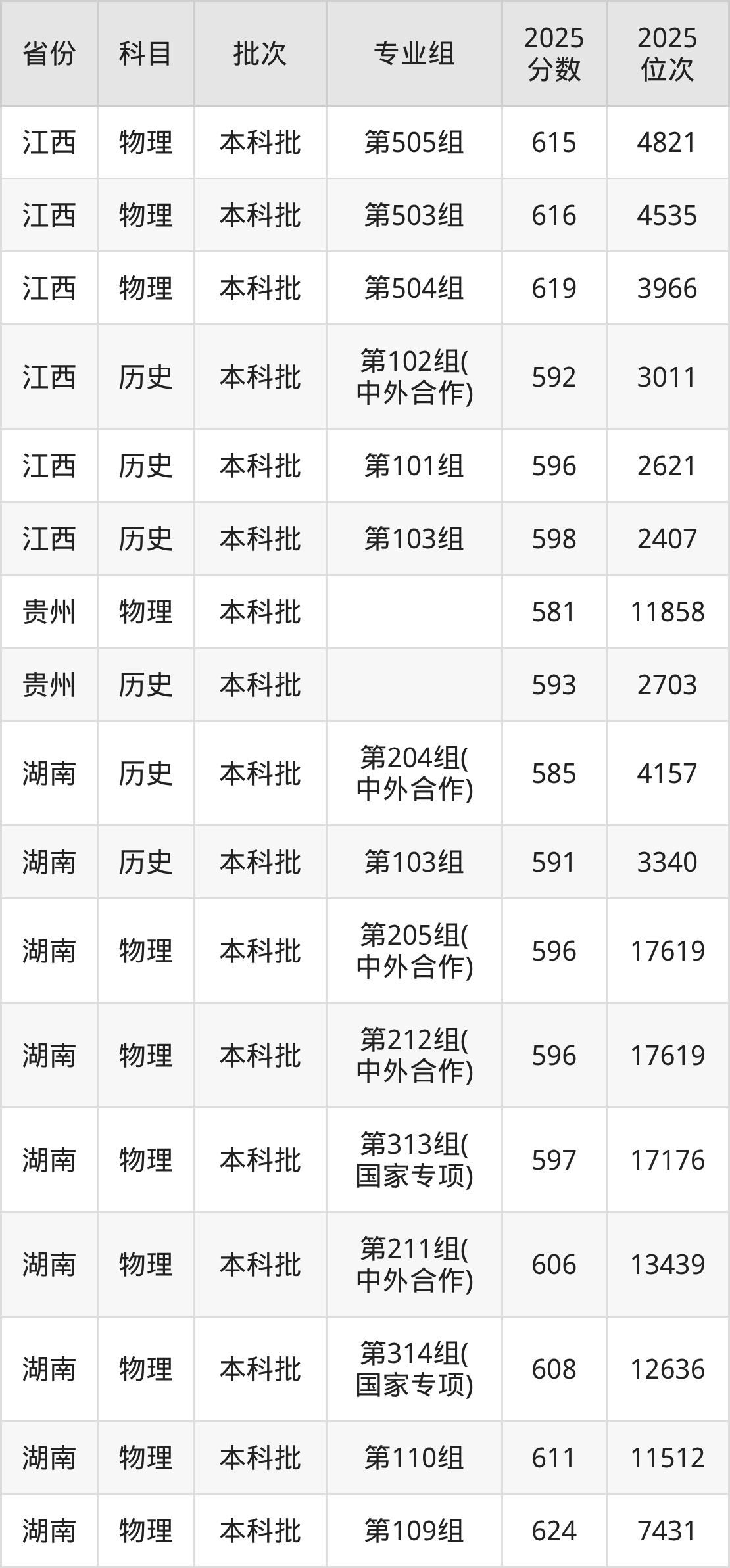 武汉理工大学212组(中外合作):2025年投档录取最低分为595分,录取最低位次为30505名。