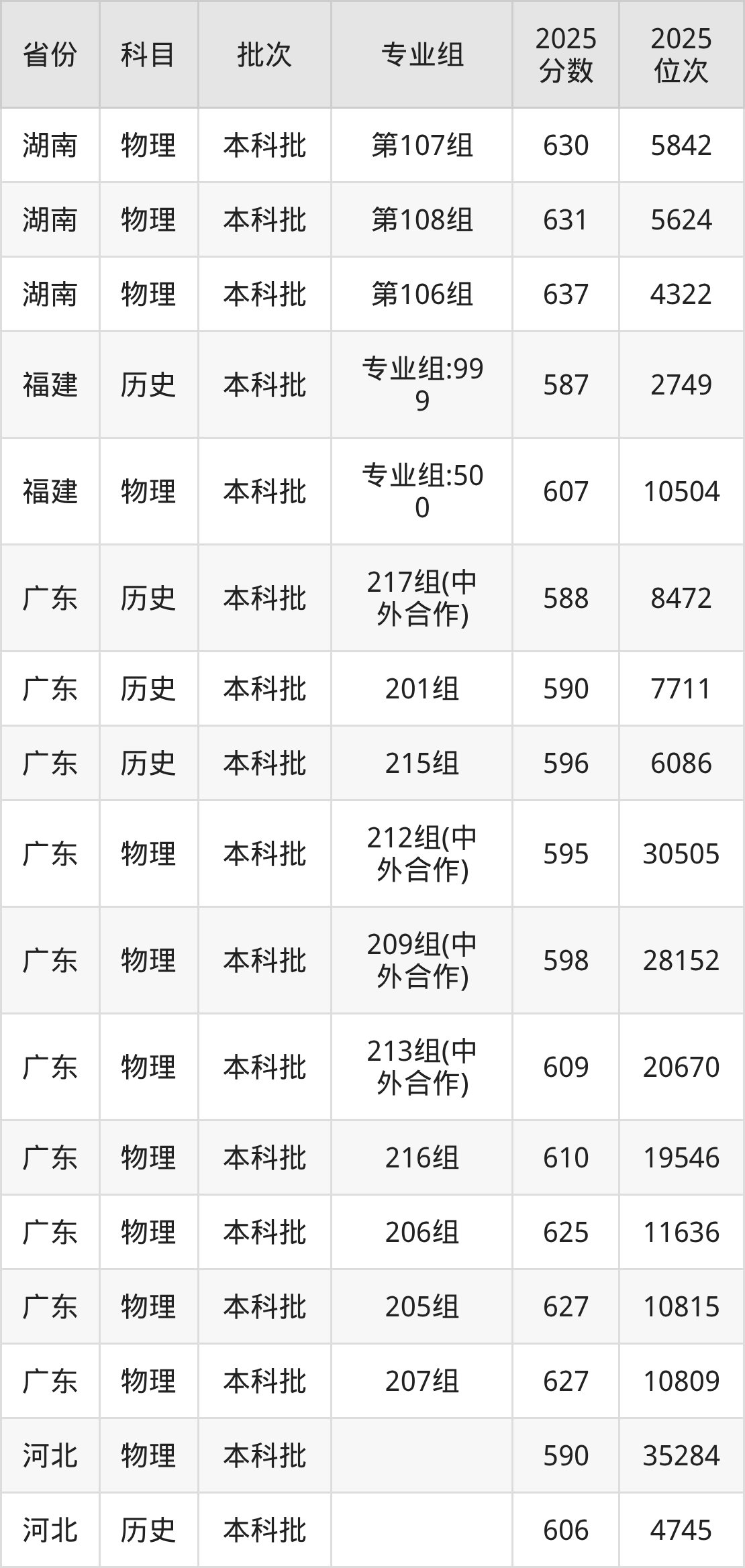 武汉理工大学第102组(中外合作):2025年投档录取最低分为592分,录取最低位次为3011名。