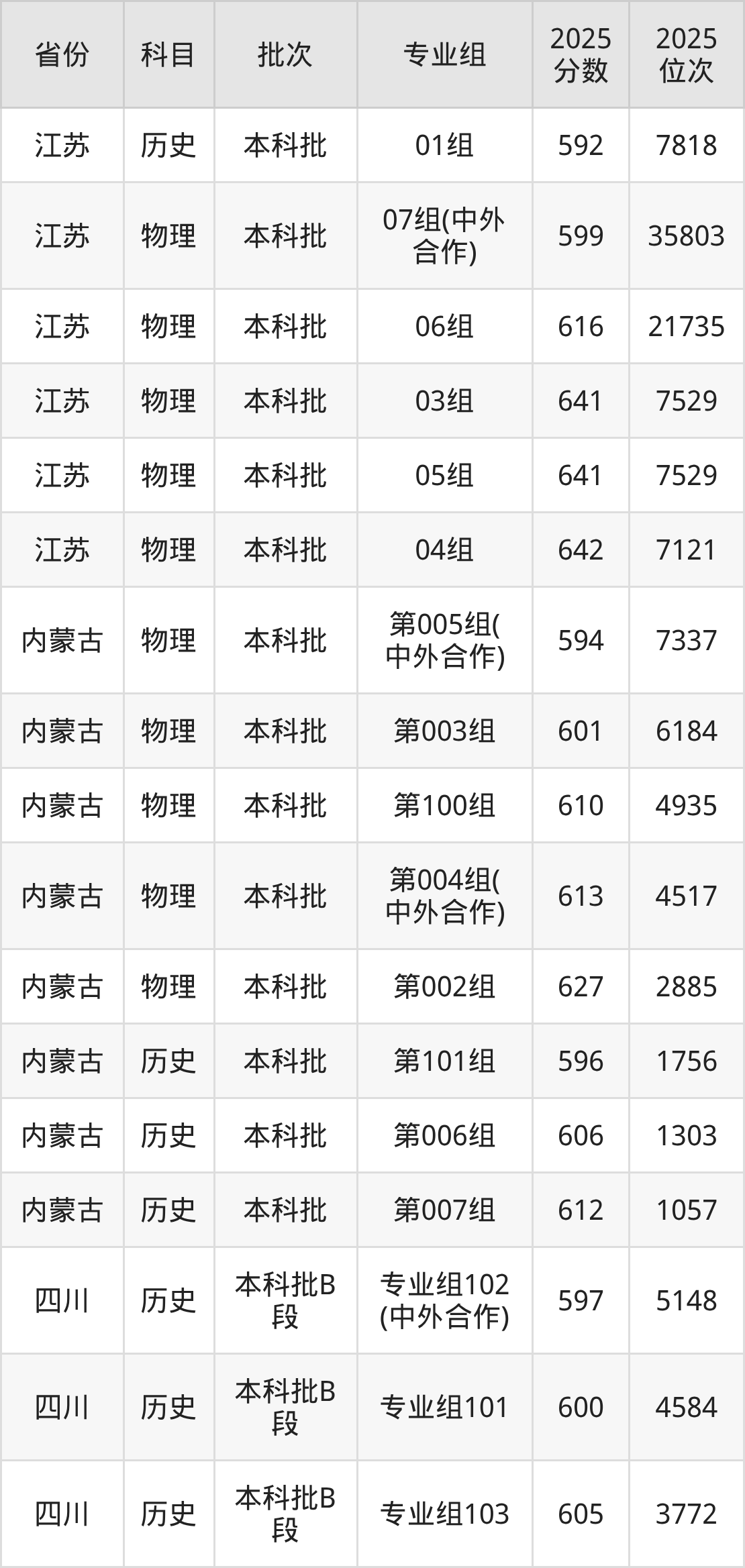 生物科学类(中外合作办学):2025年投档录取最低分为590分。