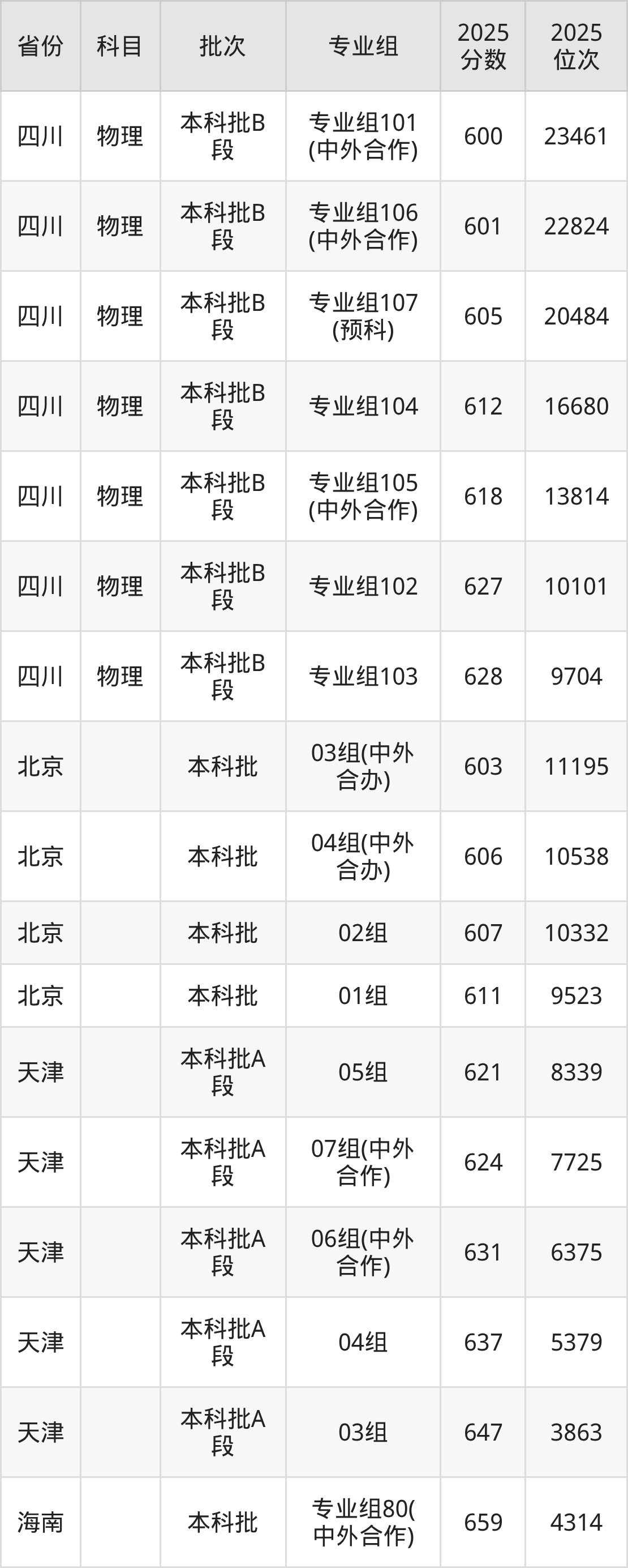 车辆工程(中外合作办学):2025年投档录取最低分为616分。