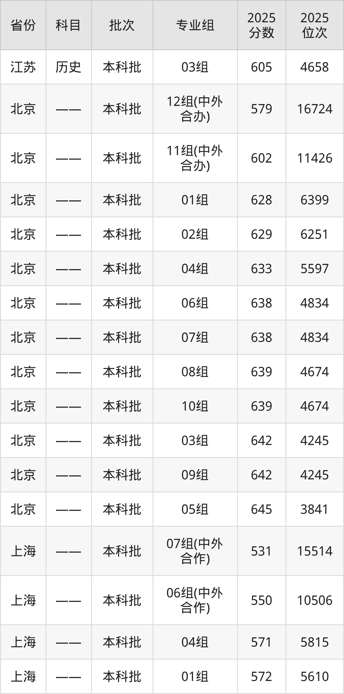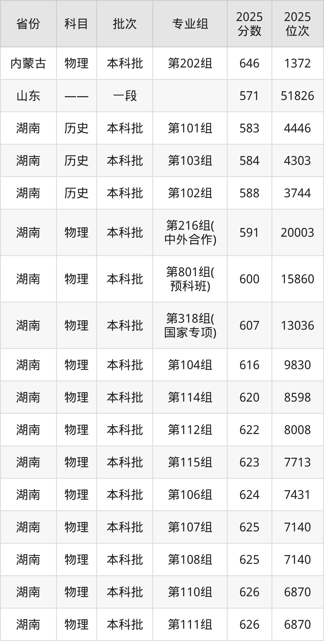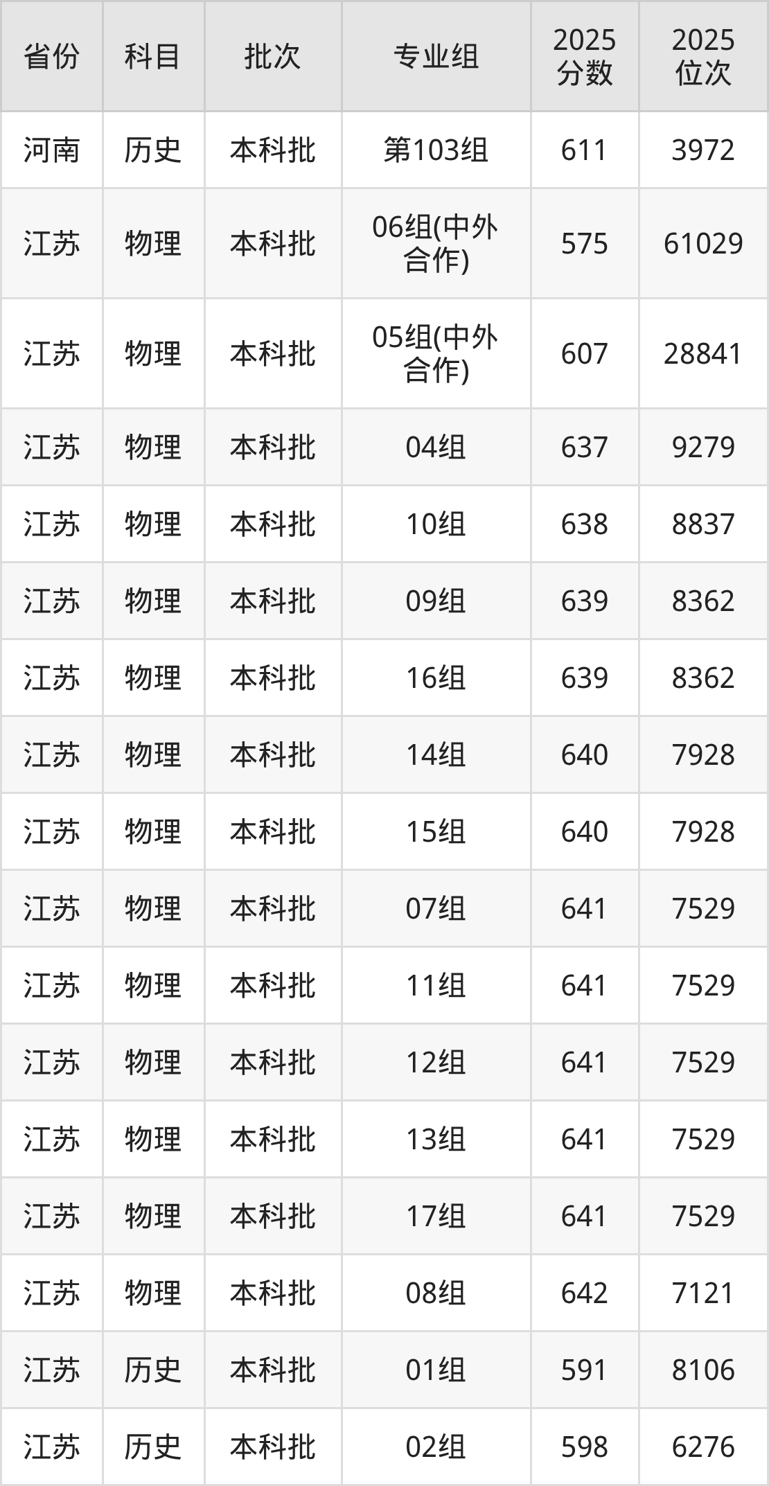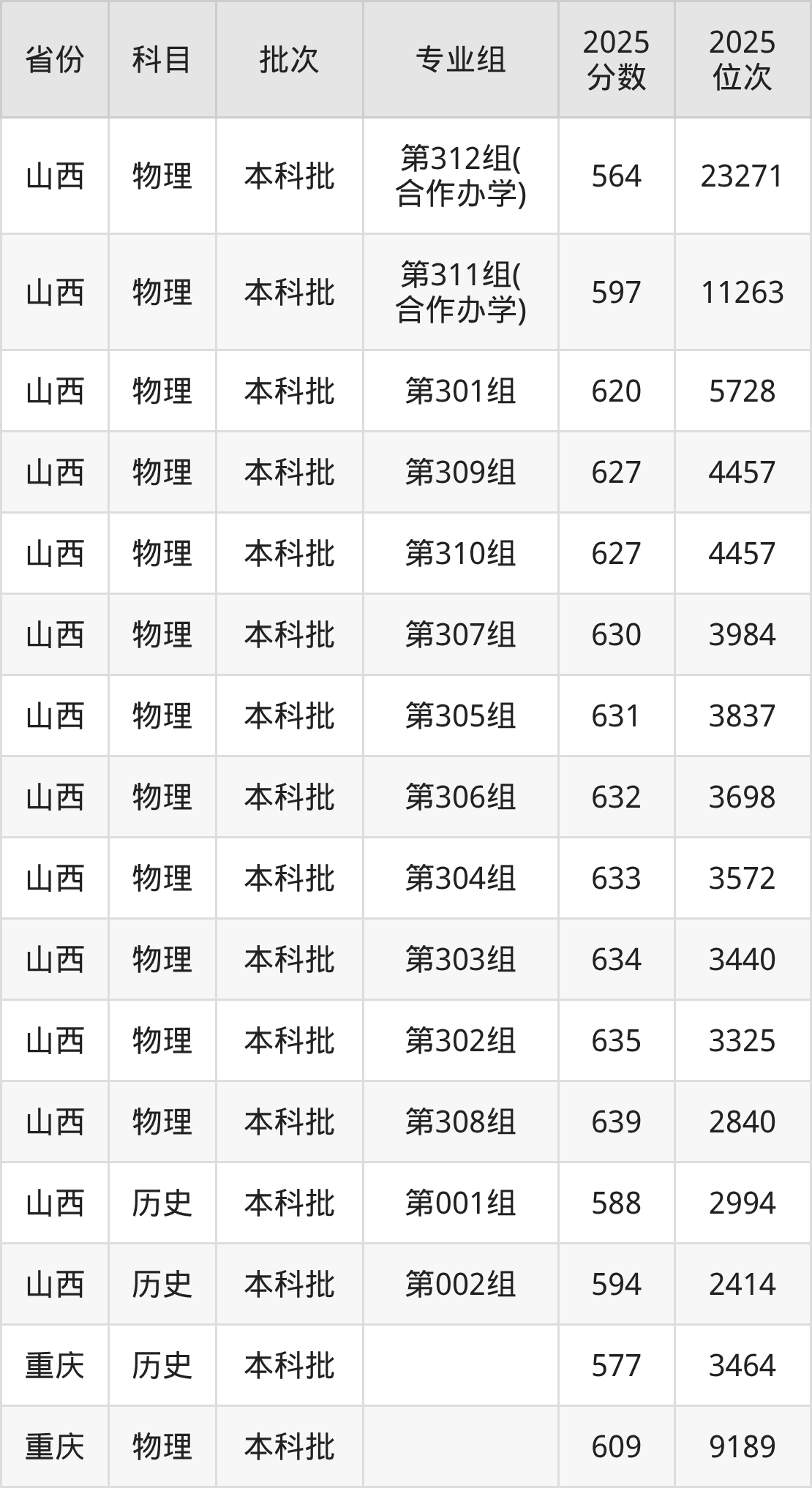 2025年在本科物理类进行招生,各专业组分数线详情如下: