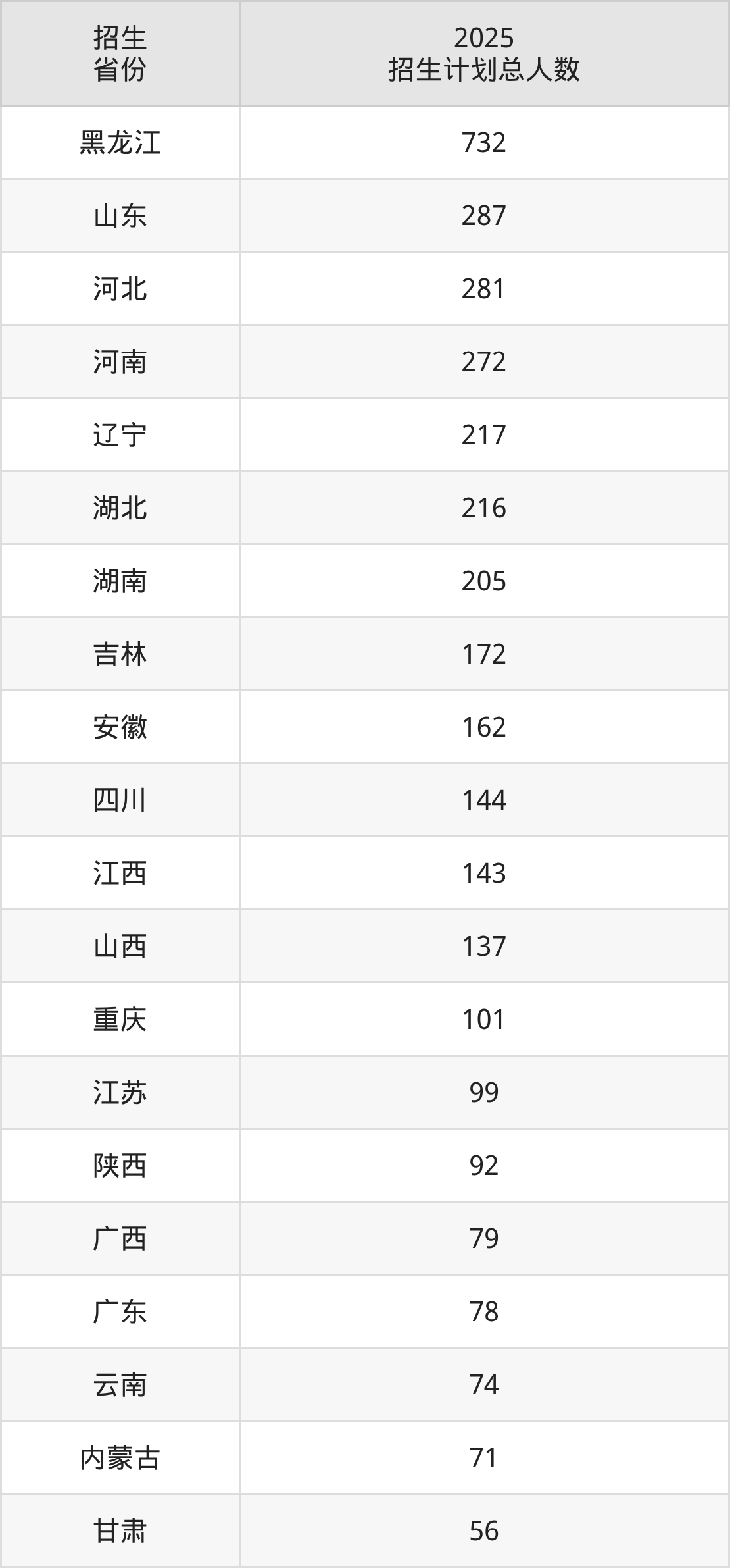 2025年哈尔滨工程大学面向全国29个省市开展本科招生;招生专业共39个,招生人数共3848人。2025年在黑龙江省招生计划总人数是732人,其中,哈尔滨工程大学在黑龙江省招生人数最多的是电子信息类。哈尔滨工程大学在各省具体招生人数情况如下表。