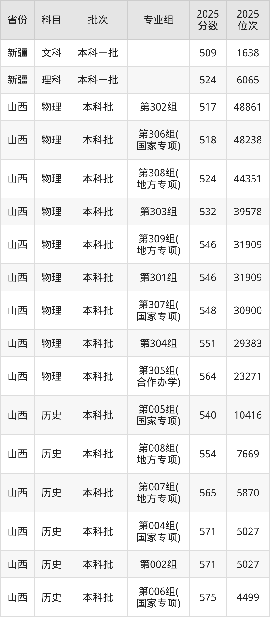 太原理工大学第006组(国家专项计划):2025年投档录取最低分为575分,录取最低位次为4499名。