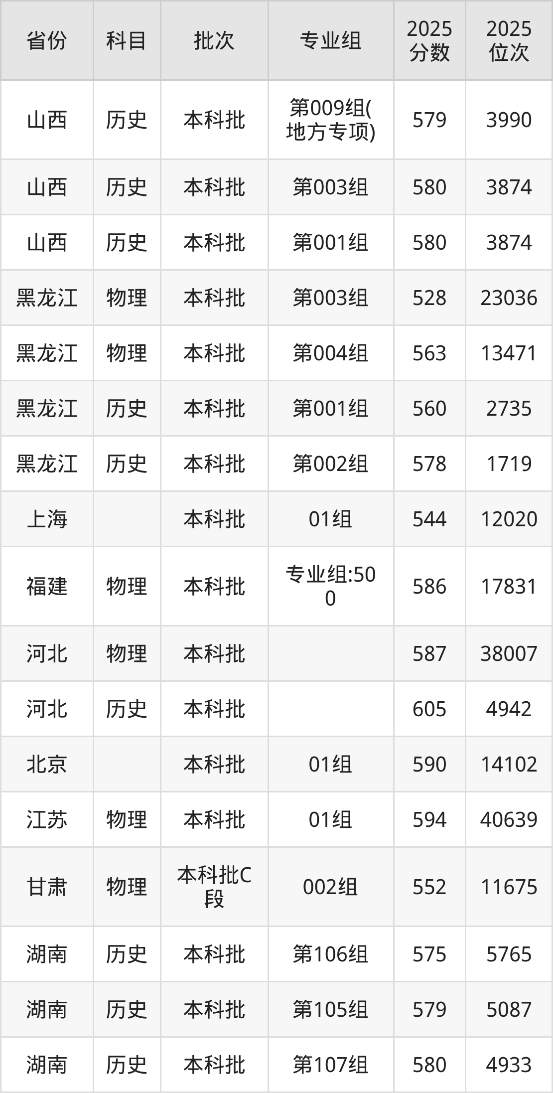 太原理工大学第005组(国家专项计划):2025年投档录取最低分为540分,录取最低位次为10416名。