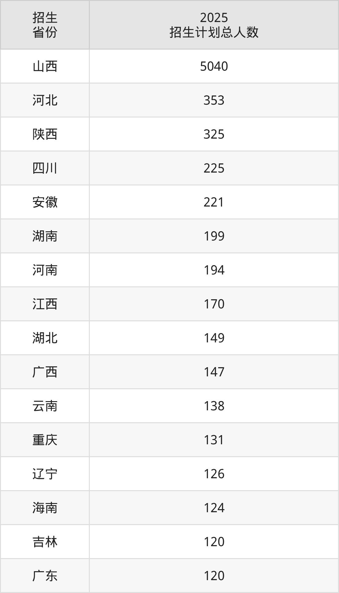 2025年太原理工大学面向全国28个省市开展本科招生;招生专业共72个,招生人数共8565人。2025年在山西省招生计划总人数是5040人,其中,太原理工大学在山西省招生人数最多的是软件工程。太原理工大学在各省具体招生人数情况如下表。