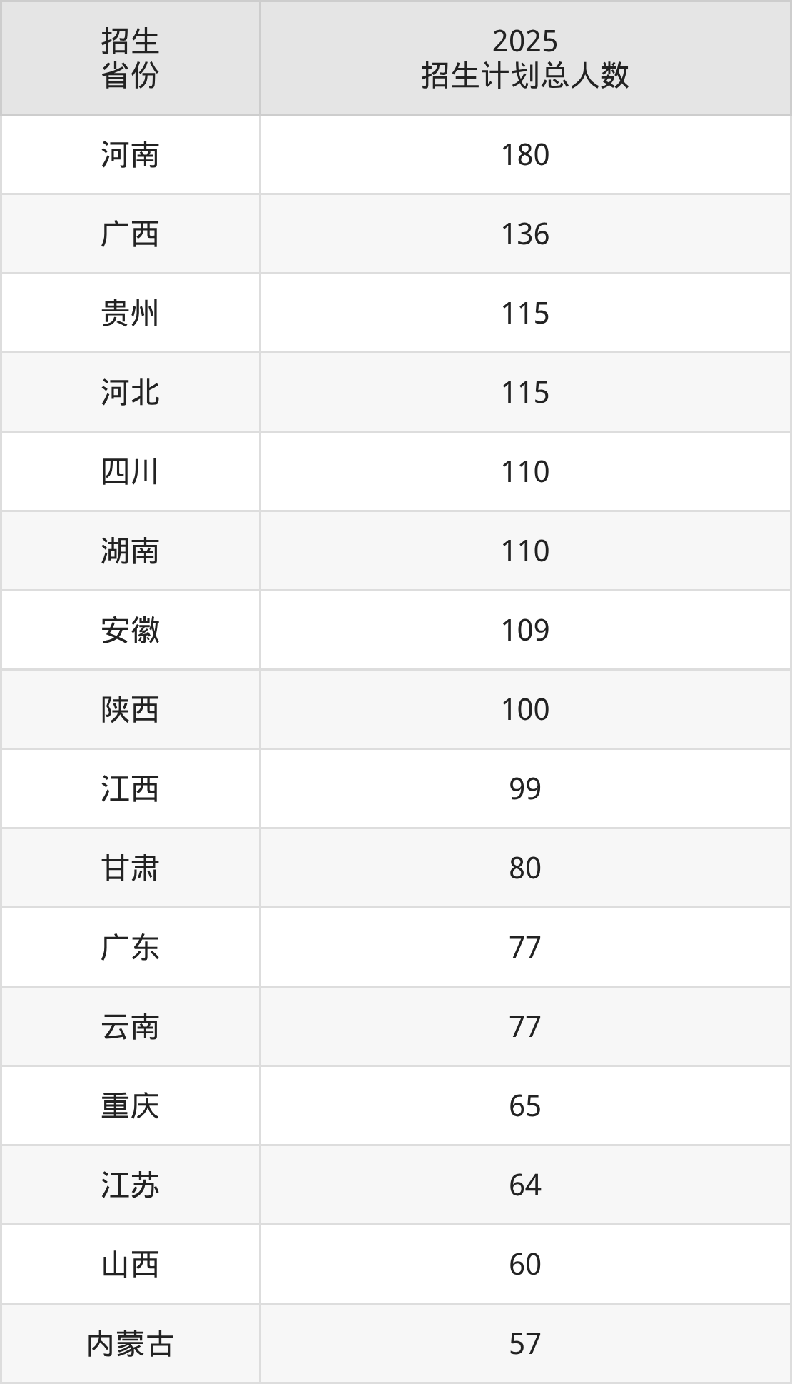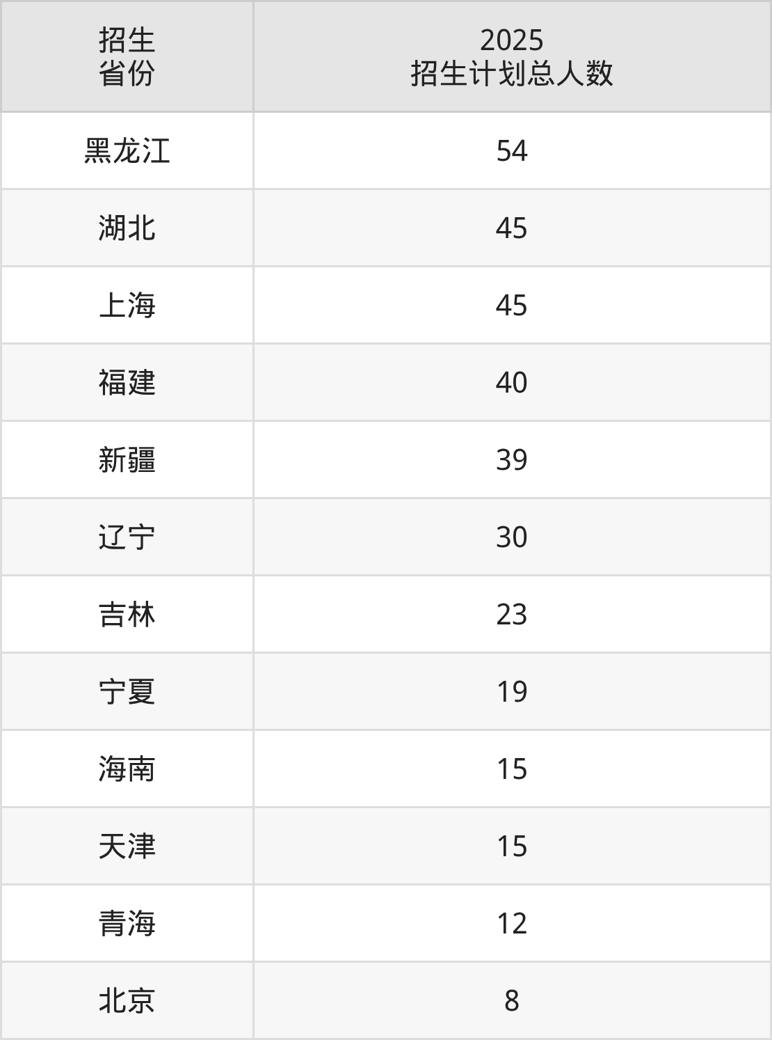 2025年中国计量大学面向全国28个省市开展本科招生;招生专业共36个,招生人数共1899人。中国计量大学在各省具体招生人数情况如下表。