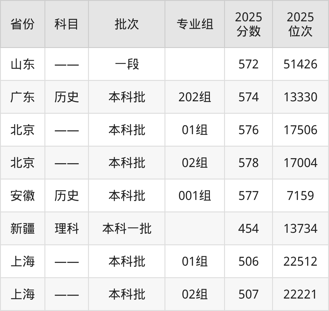 2025年在本科历史类进行招生,各专业组分数线详情如下: