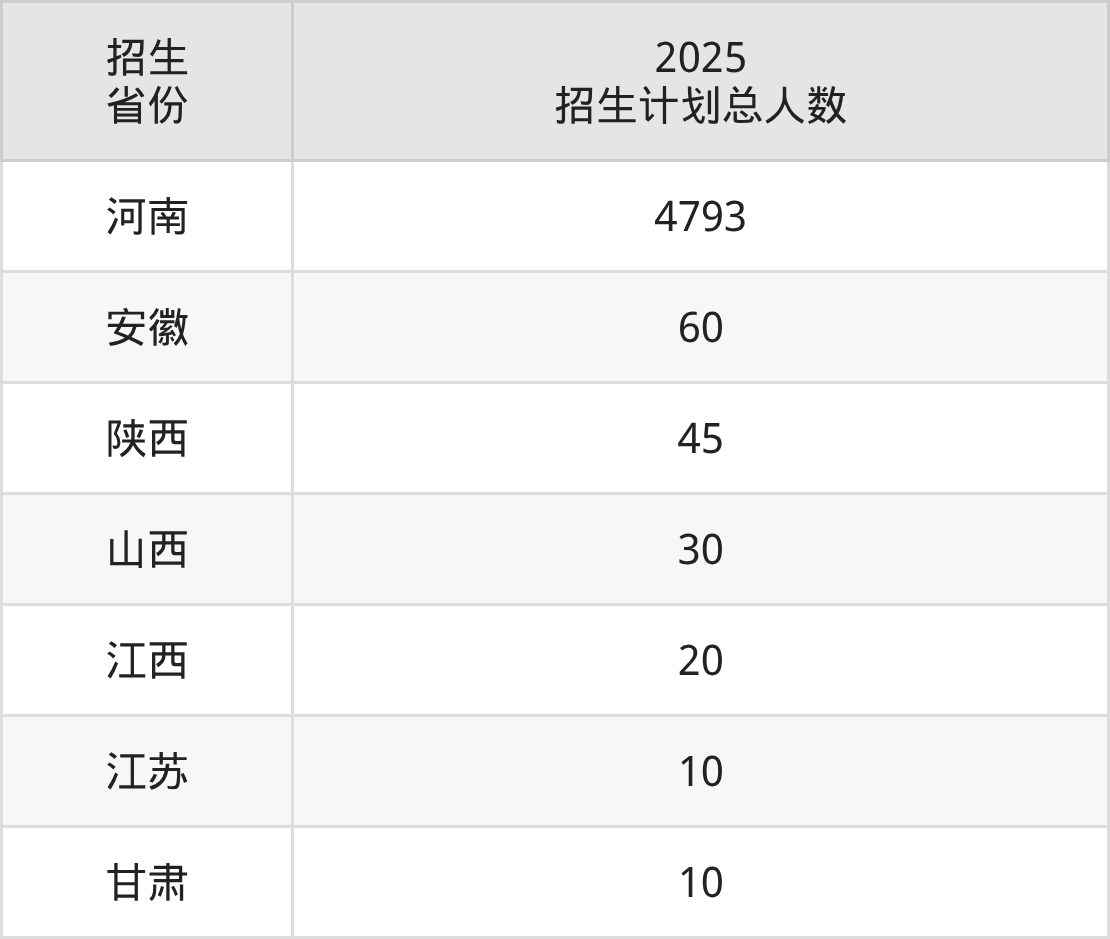 2025年郑州铁路职业技术学院面向全国7个省市开展专科招生;招生专业共51个,招生人数共4968人。2025年在河南省招生计划总人数是4793人,其中,郑州铁路职业技术学院在河南省招生人数最多的是智能制造装备技术。郑州铁路职业技术学院在各省具体招生人数情况如下表。