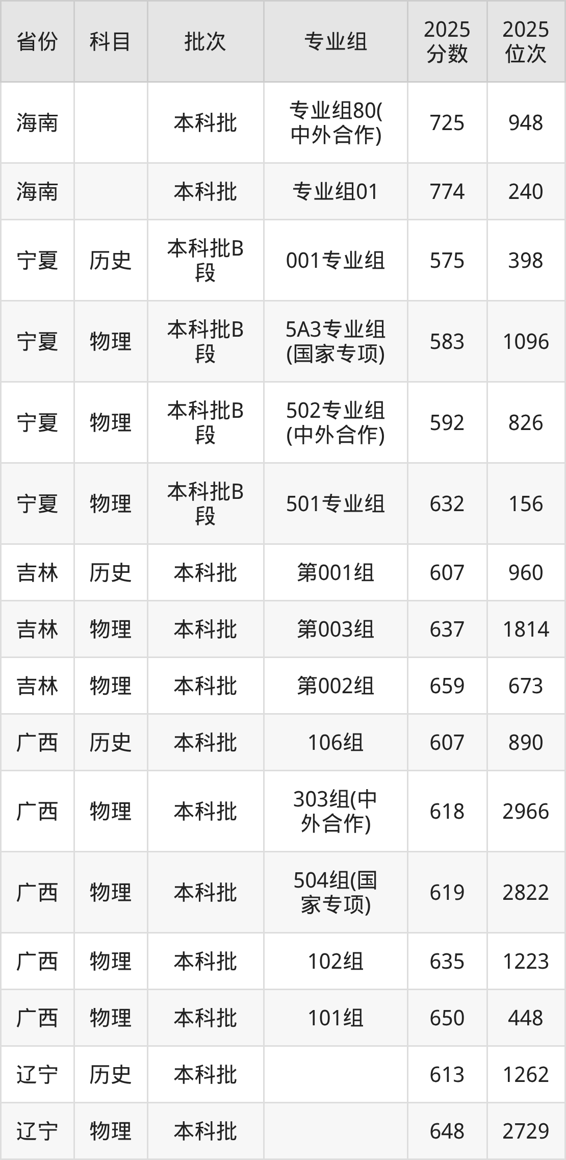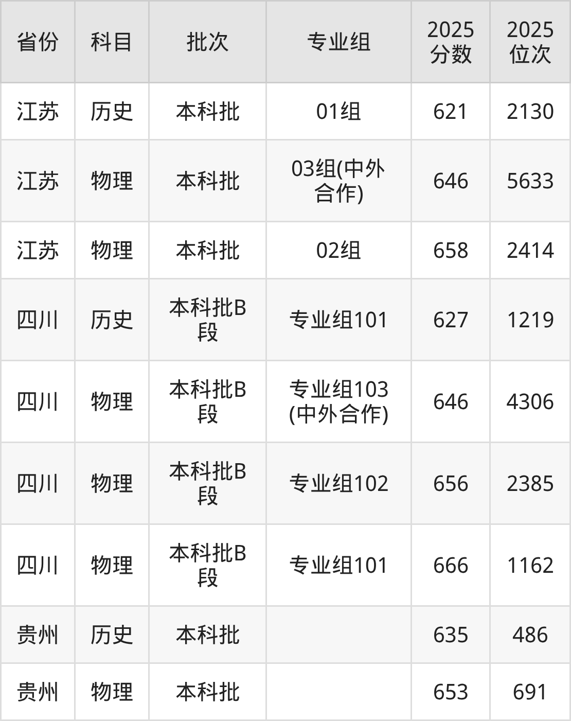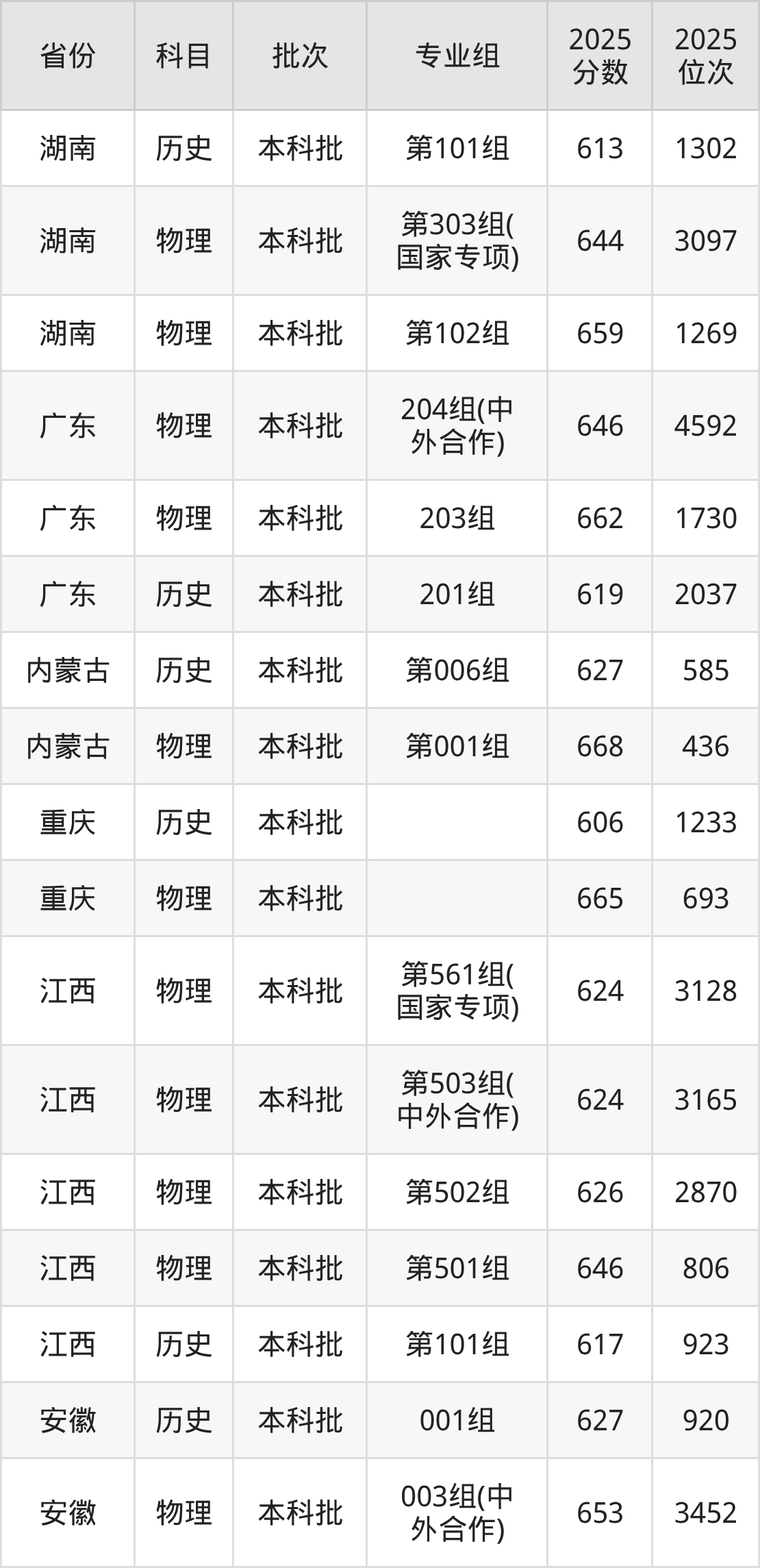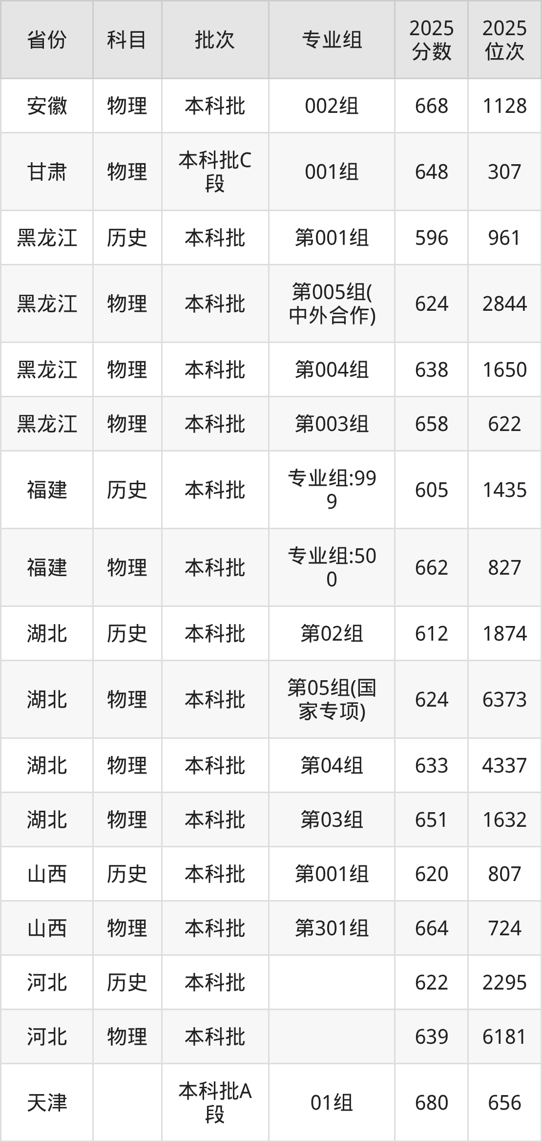 2025年在本科物理类进行招生,各专业组分数线详情如下:
