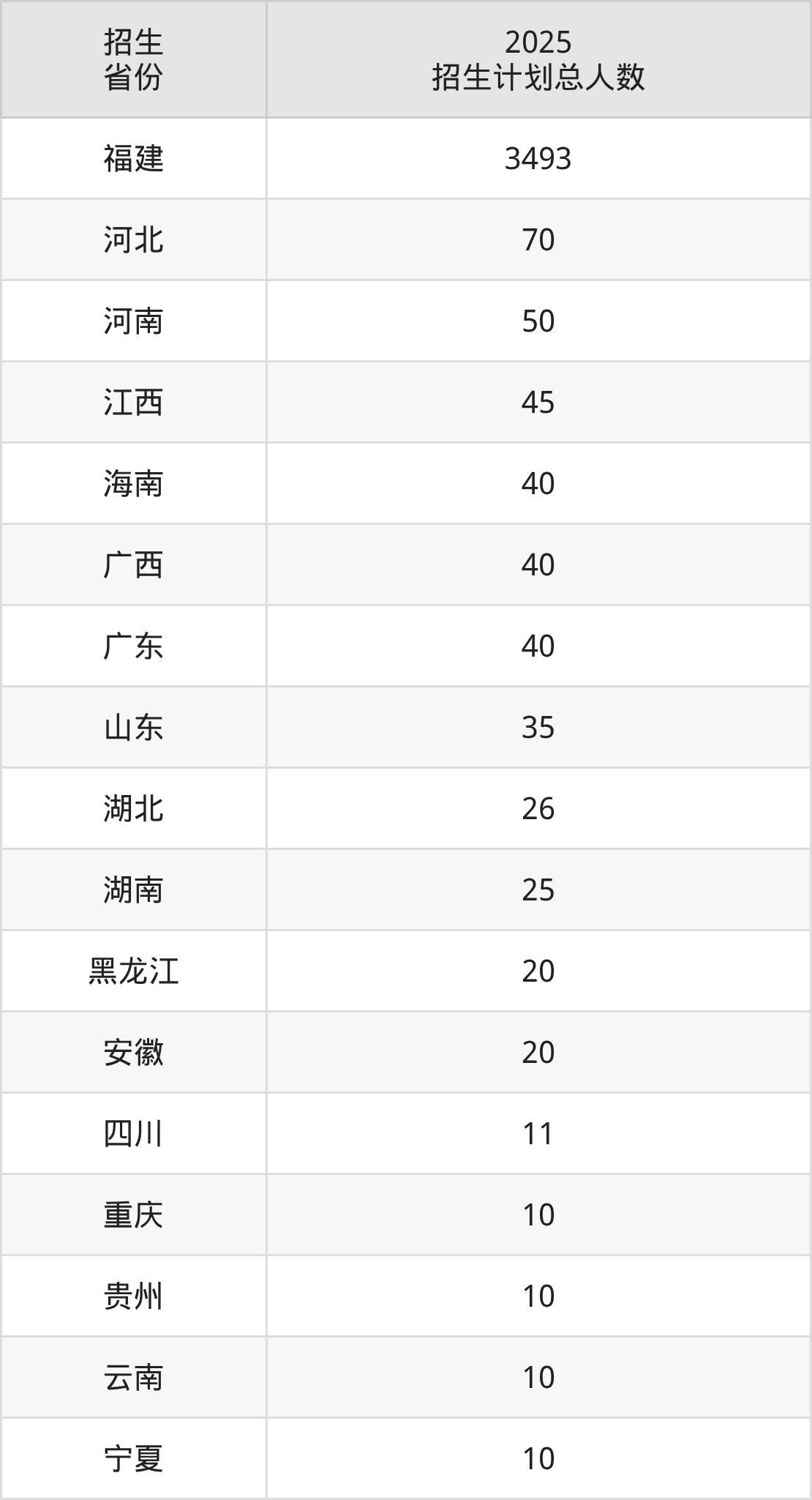2025年漳州科技职业学院面向全国17个省市开展专科招生;招生专业共39个,招生人数共3955人。2025年在福建省招生计划总人数是3493人,其中,漳州科技职业学院在福建省招生人数最多的是康复治疗技术。漳州科技职业学院在各省具体招生人数情况如下表。