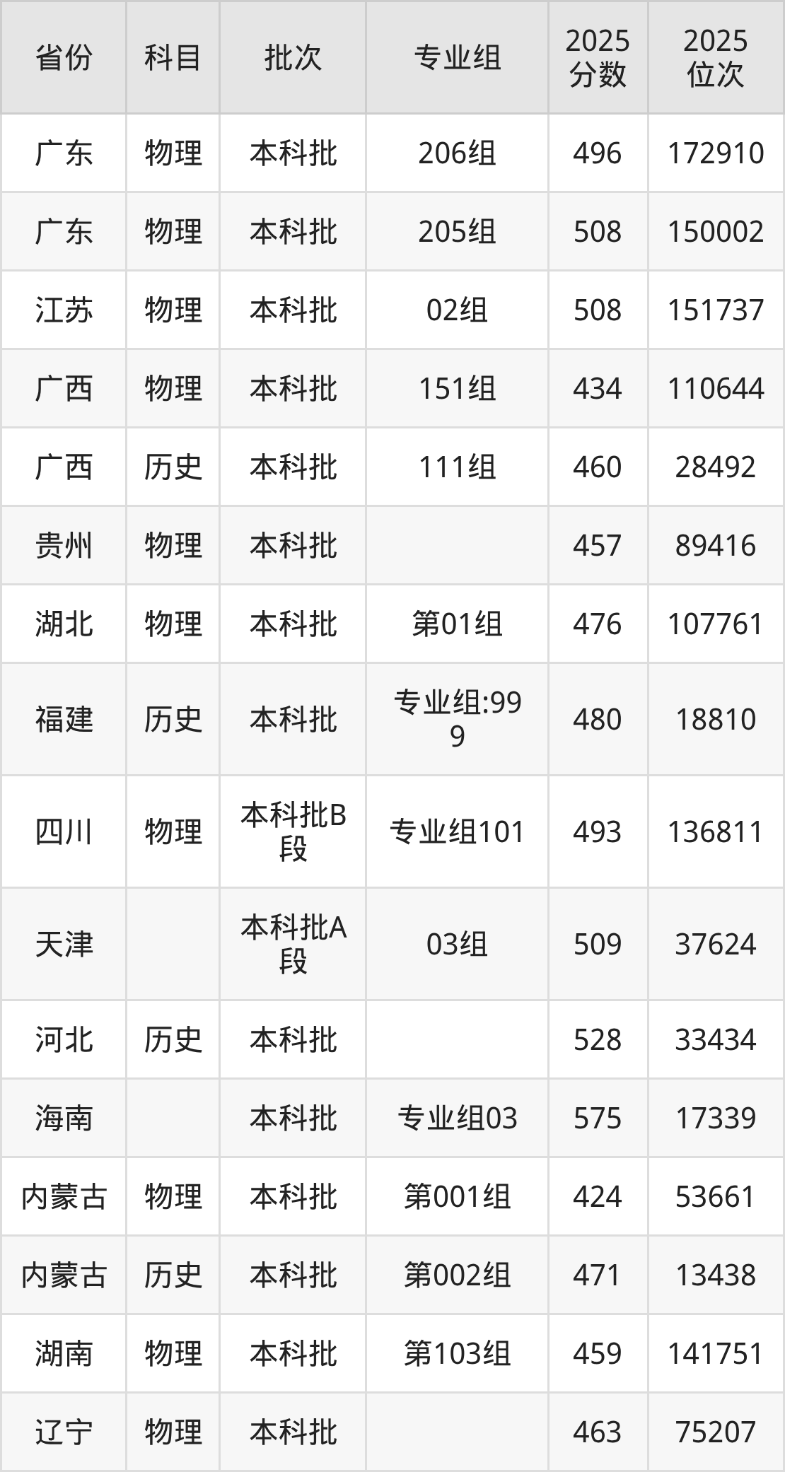 2025年在本科物理类进行招生,各专业组分数线详情如下: