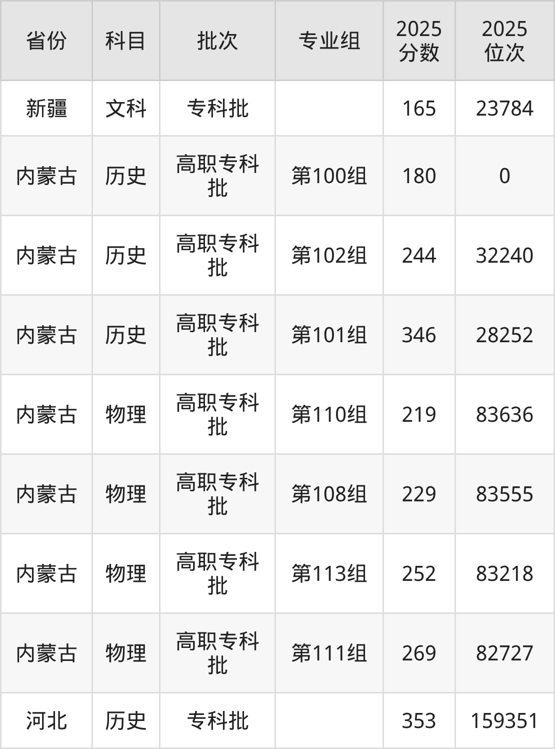 专科历史类投档录取最低353分