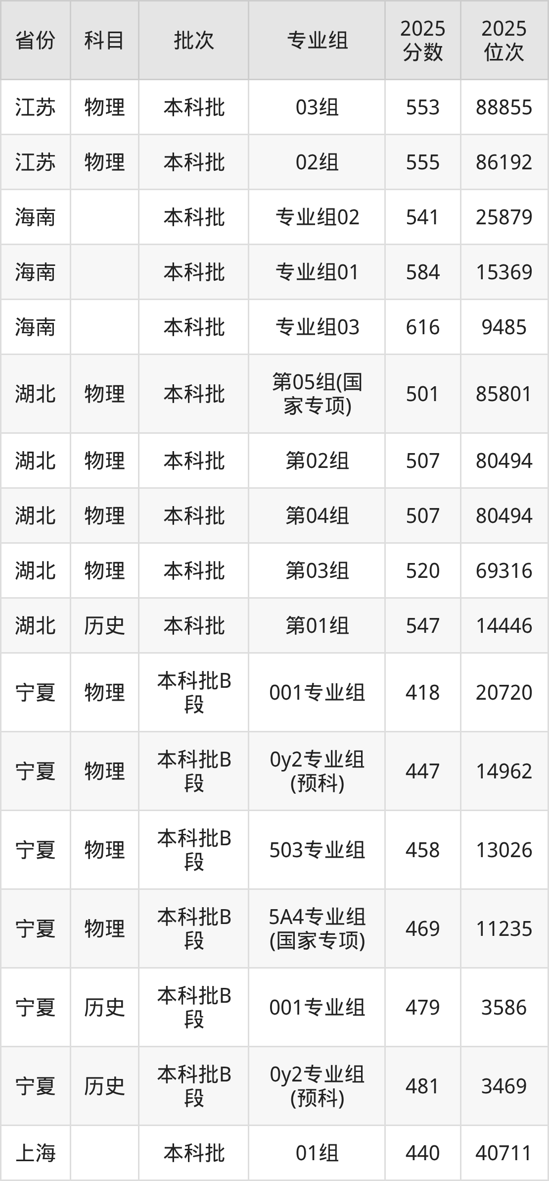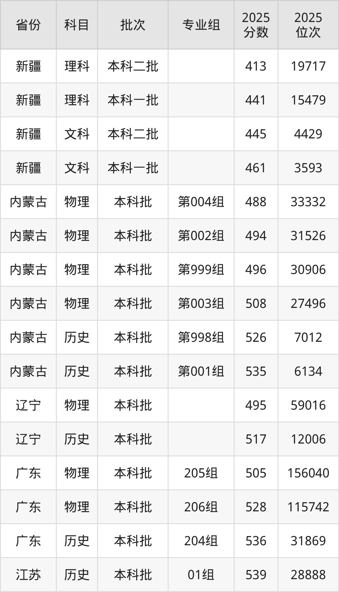 2025年投档录取最低分为517分,录取最低位次为12006名。