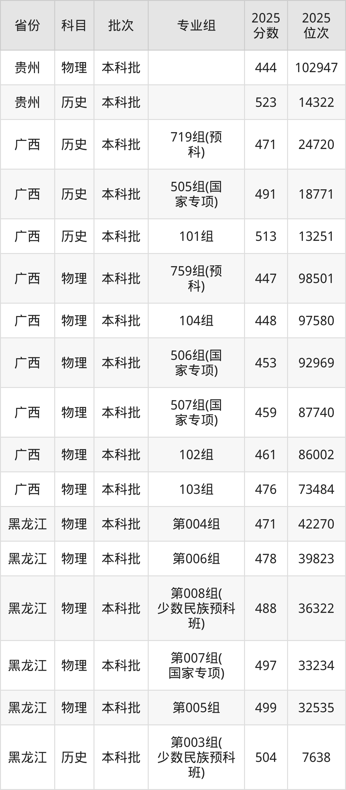 大连民族大学759组(预科):2025年投档录取最低分为447分,录取最低位次为98501名。