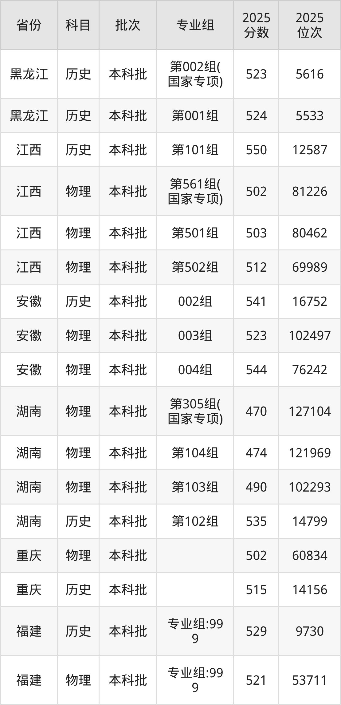 2025年投档录取最低分为523分,录取最低位次为14322名。