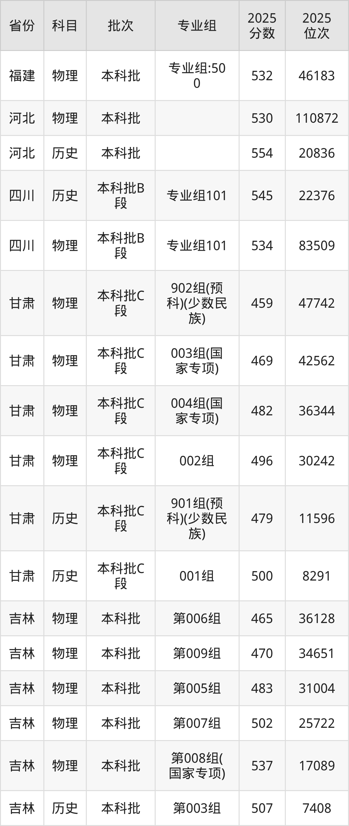 2025年投档录取最低分为495分,录取最低位次为59016名。