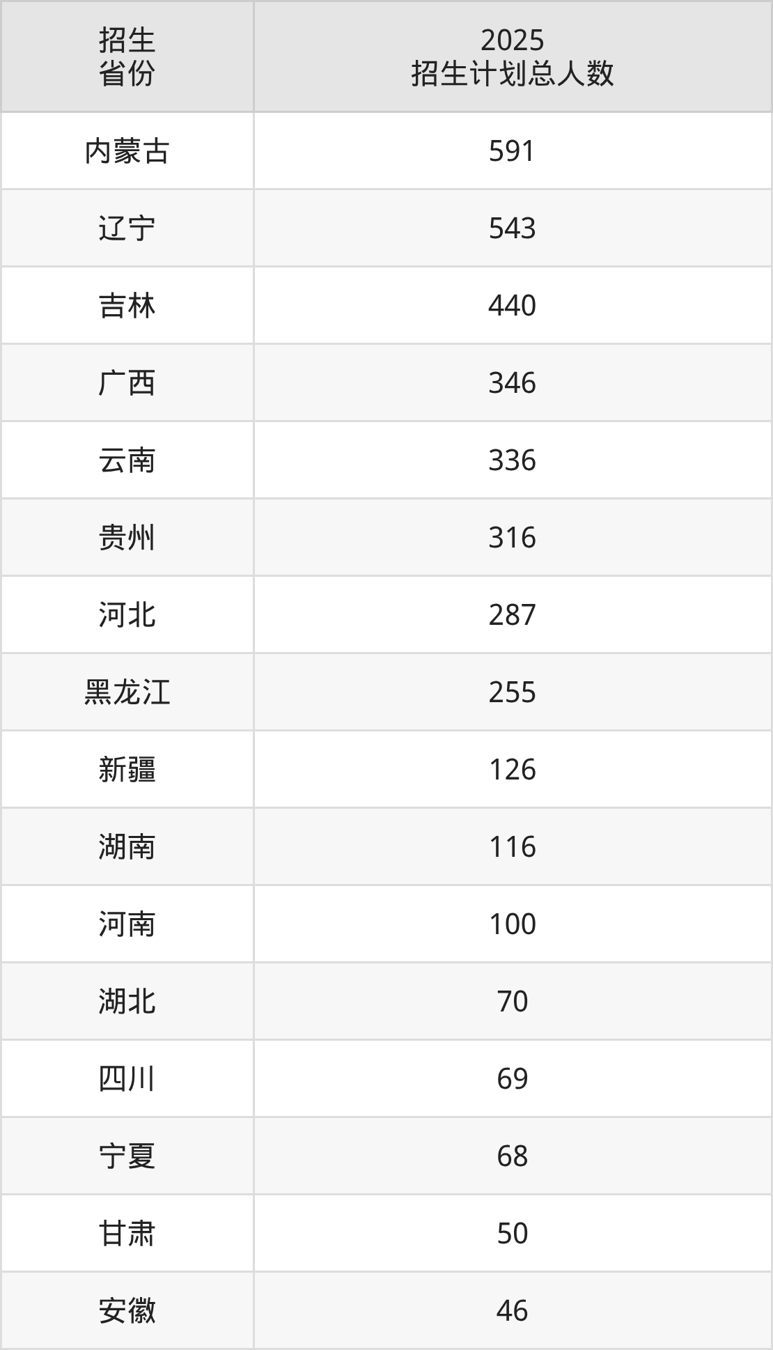 2025年大连民族大学面向全国28个省市开展本科招生;招生专业共50个,招生人数共4004人。