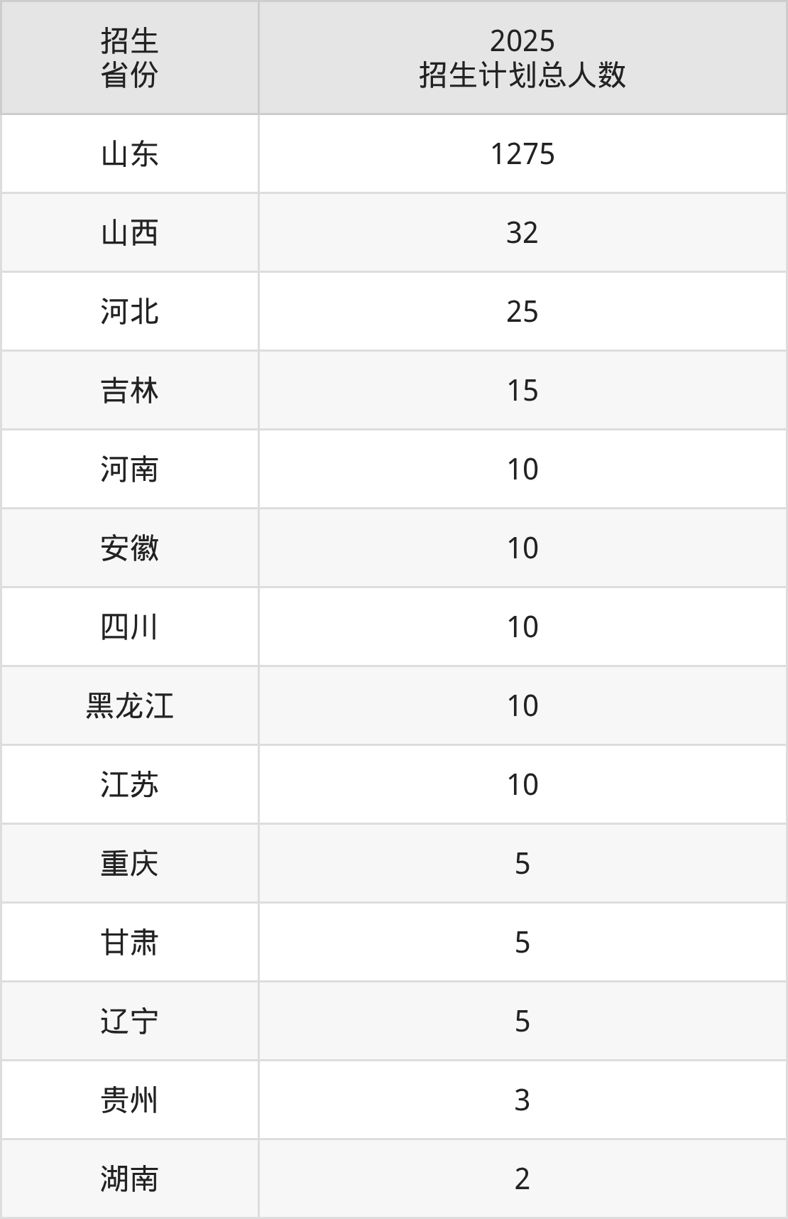 2025年山东工程职业技术大学面向全国14个省市开展本科招生;招生专业共16个,招生人数共1417人。2025年在山东省招生计划总人数是1275人,其中,山东工程职业技术大学在山东省招生人数最多的是大数据工程技术。山东工程职业技术大学在各省具体招生人数情况如下表。