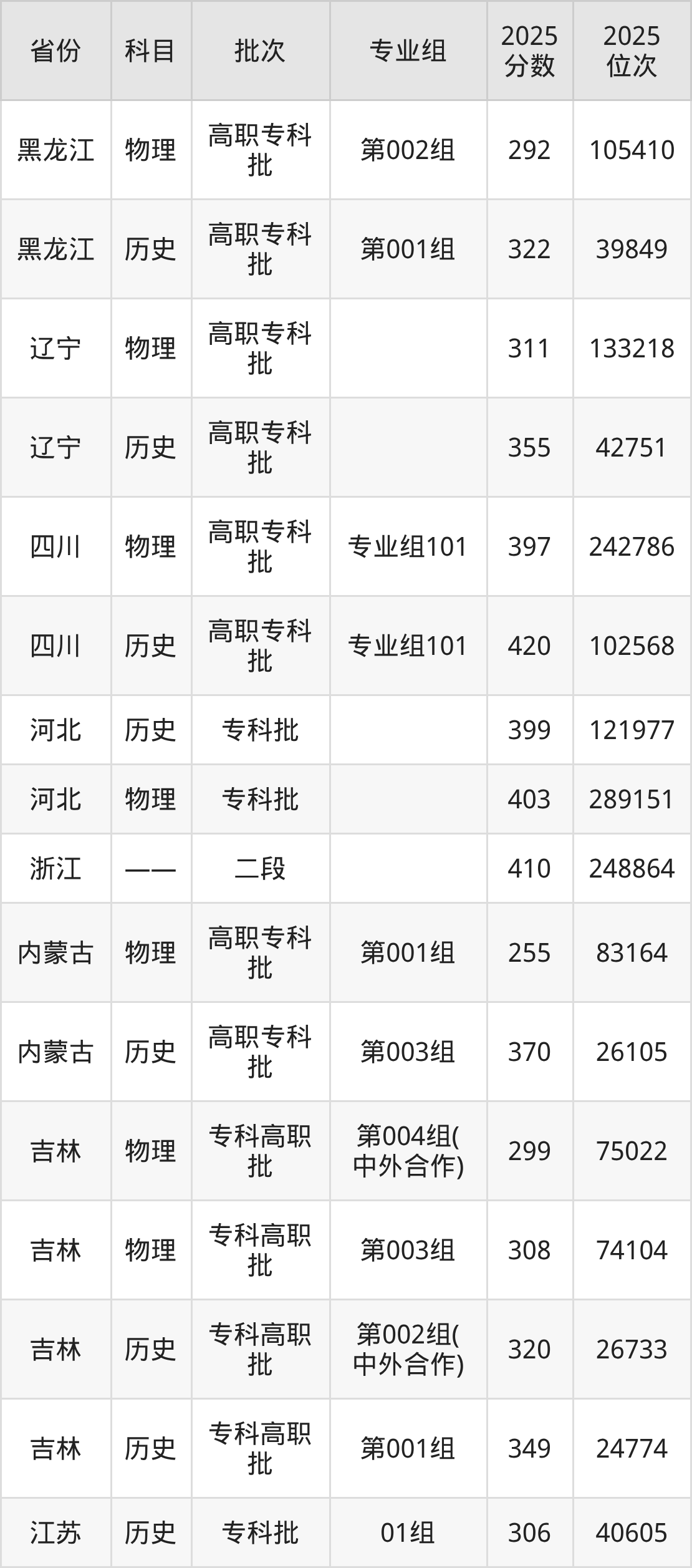 下面是2025年吉林电子信息职业技术学院全国录取分数线一览表,请查阅。