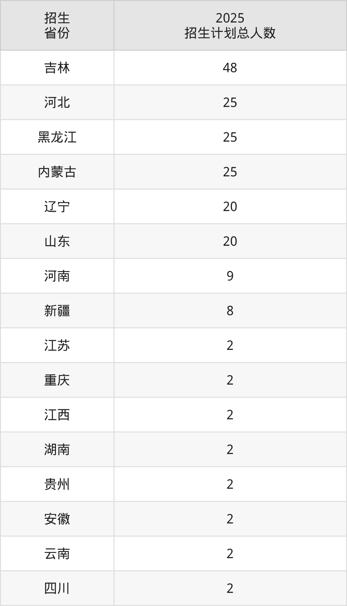 2025年吉林电子信息职业技术学院面向全国16个省市开展专科招生;招生专业共24个,招生人数共196人。2025年在吉林省招生计划总人数是48人,其中,吉林电子信息职业技术学院在吉林省招生人数最多的是现代移动通信技术。吉林电子信息职业技术学院在各省具体招生人数情况如下表。