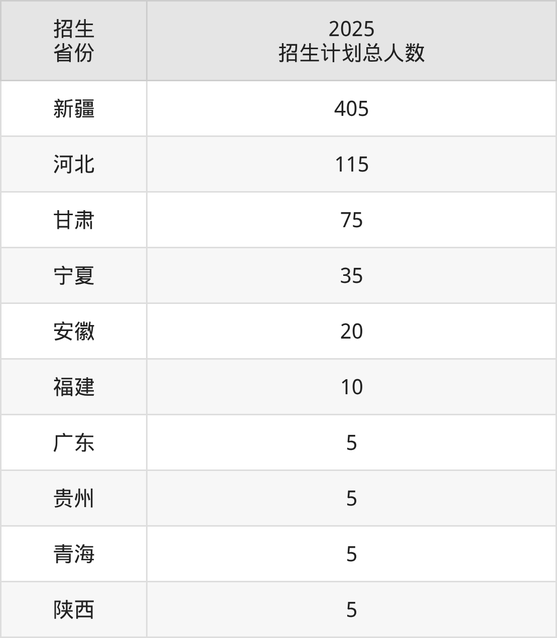 2025年新疆科技职业技术学院面向全国10个省市开展专科招生;招生专业共27个,招生人数共680人。2025年在新疆维吾尔自治区招生计划总人数是405人,其中,新疆科技职业技术学院在新疆维吾尔自治区招生人数最多的是护理。新疆科技职业技术学院在各省具体招生人数情况如下表。