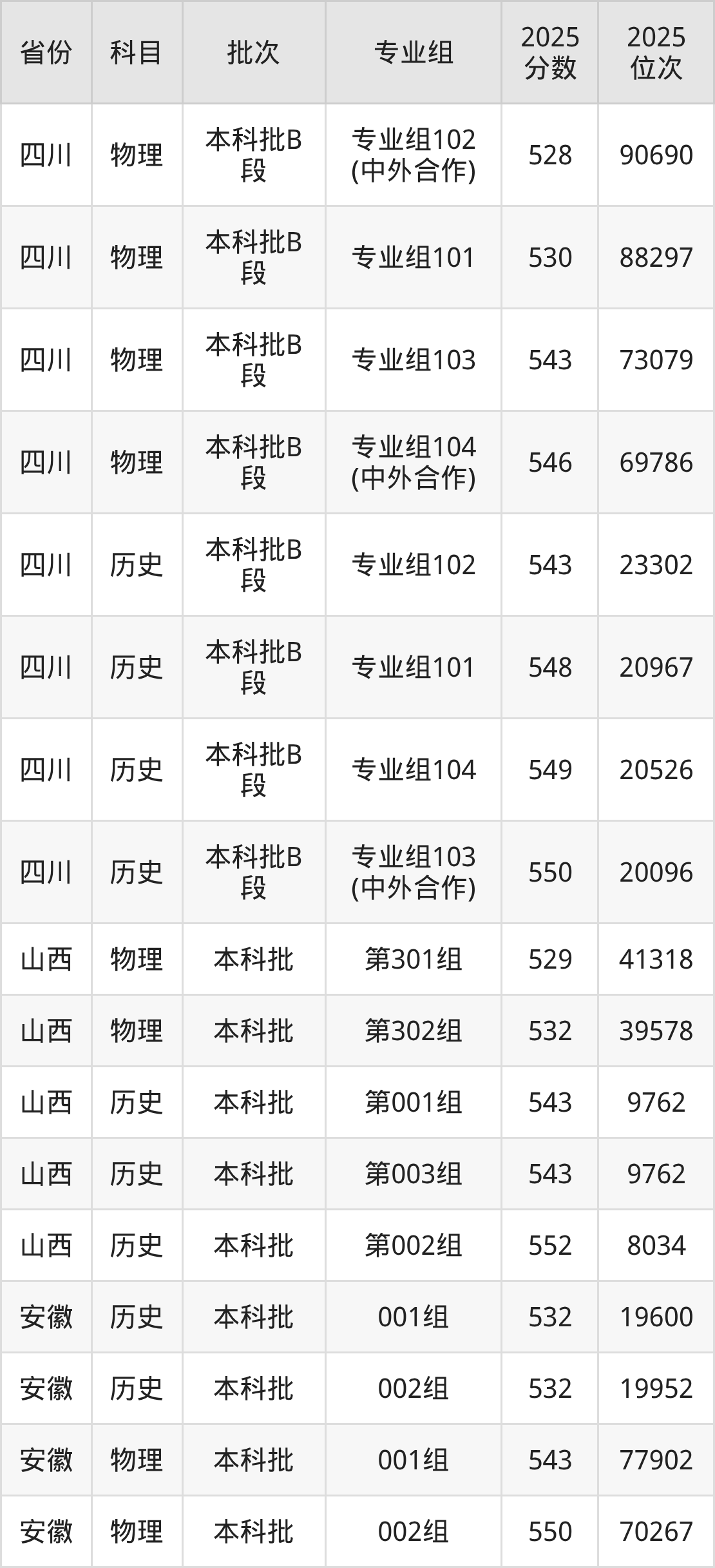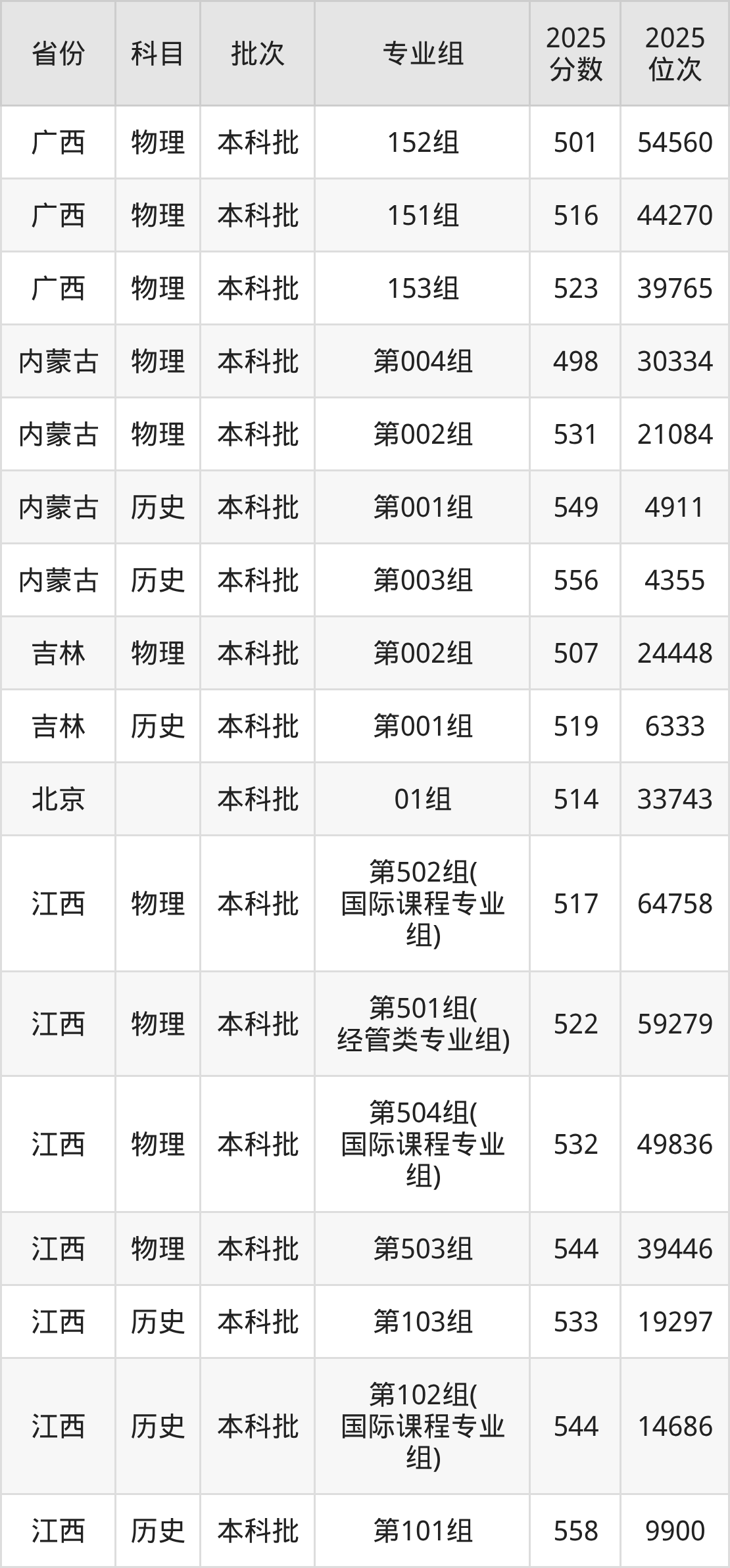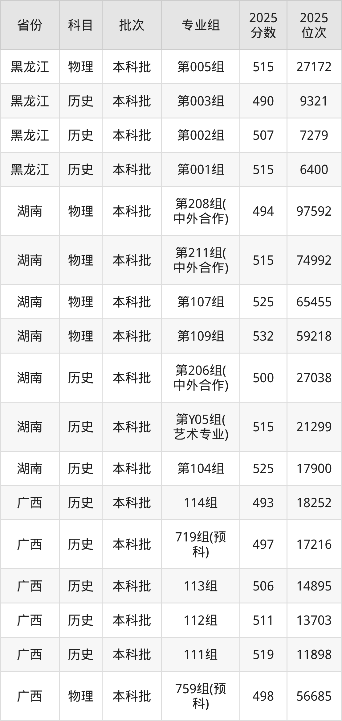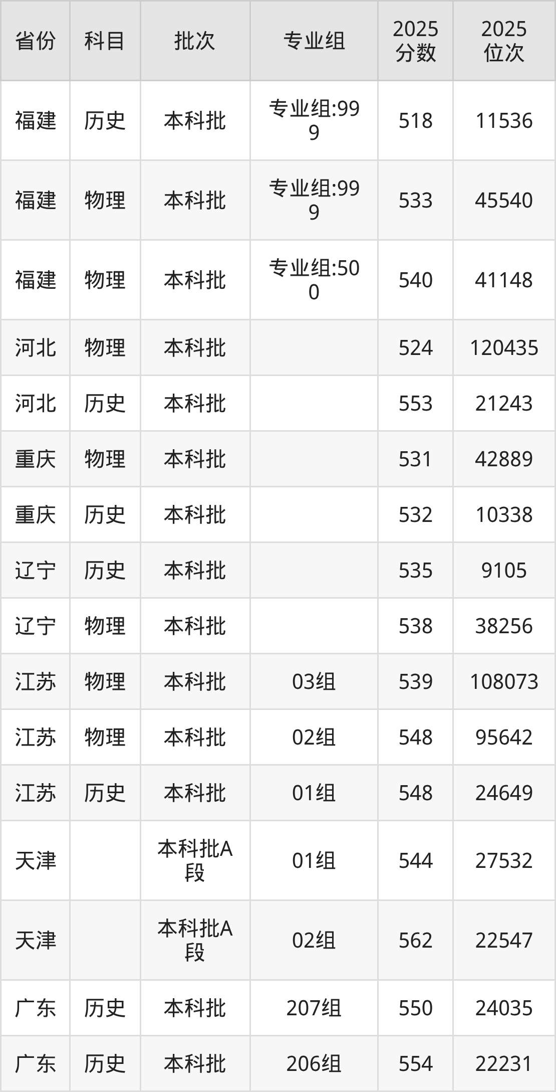 2025年投档录取最低分为538分,录取最低位次为38256名。