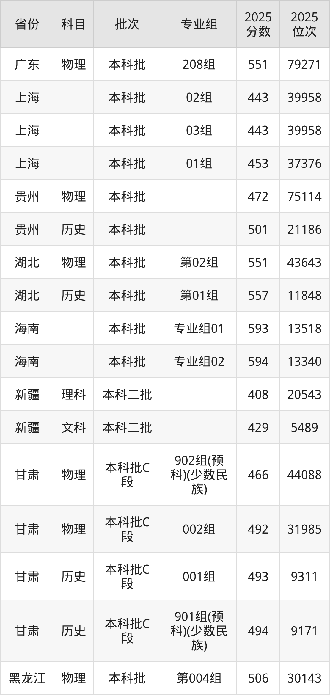 2025年投档录取最低分为472分,录取最低位次为75114名。