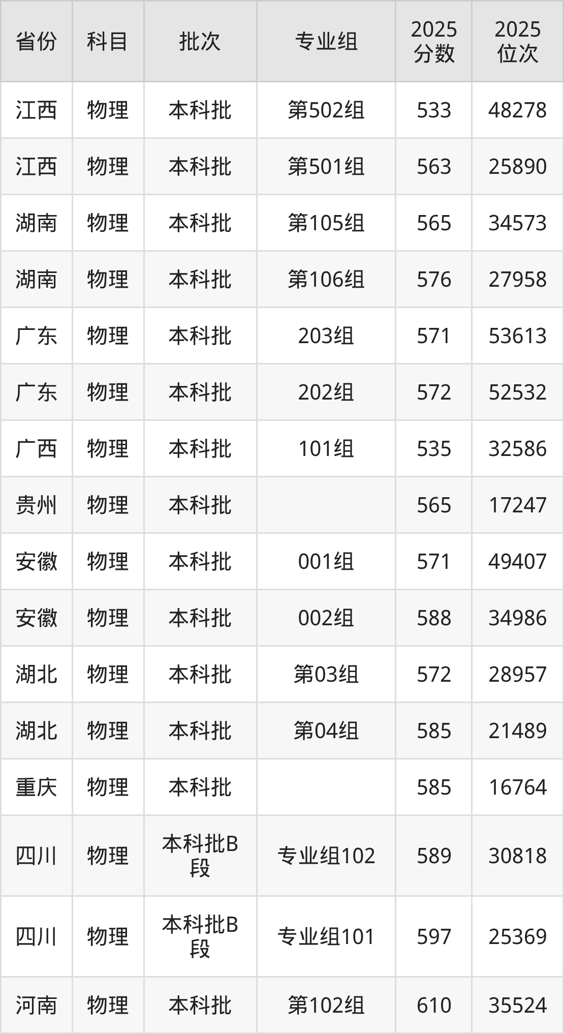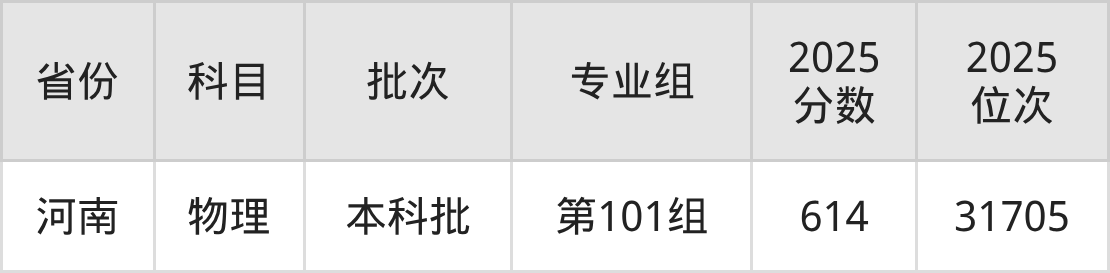 2025年在本科物理类进行招生,各专业组分数线详情如下: