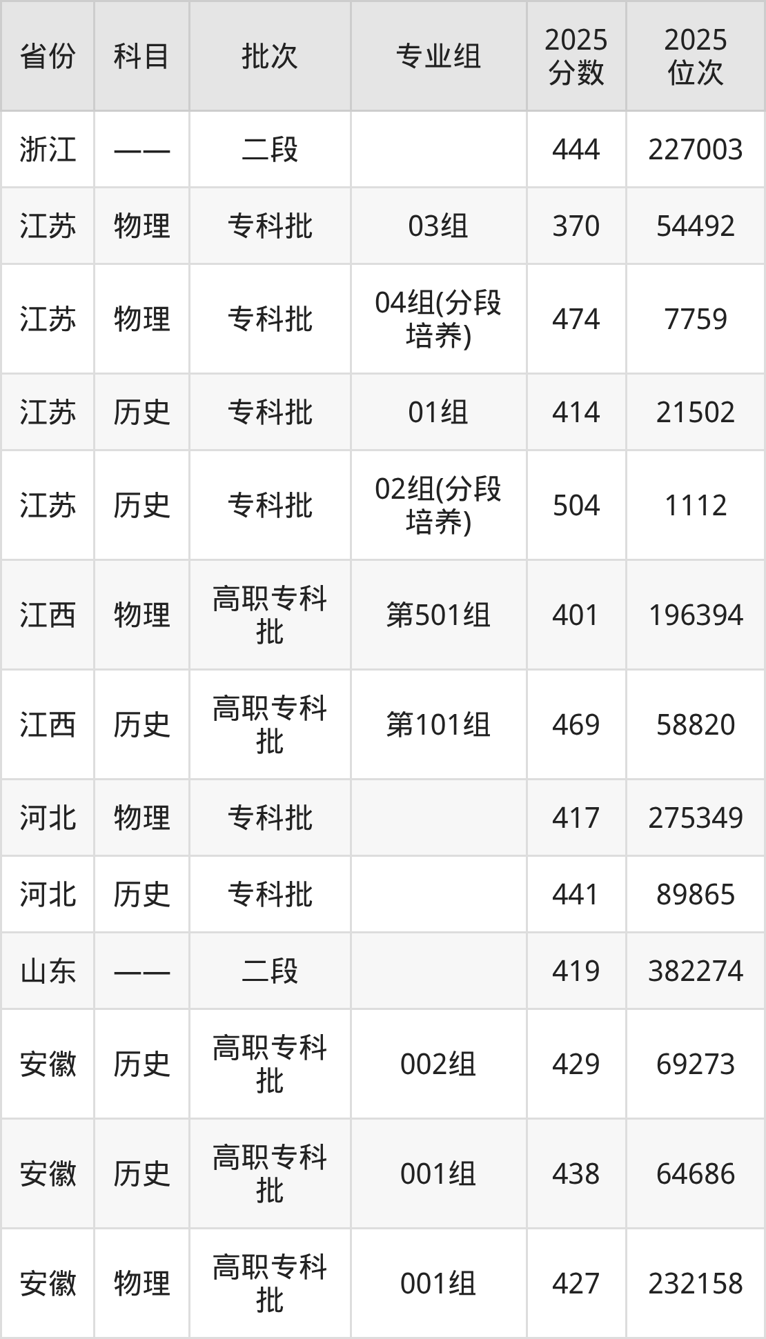 下面是2025年徐州生物工程职业技术学院全国录取分数线一览表,请查阅。