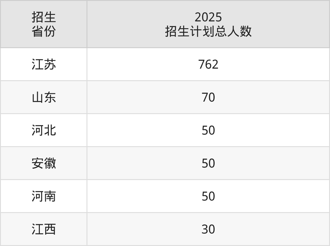 2025年徐州生物工程职业技术学院面向全国6个省市开展专科招生;招生专业共27个,招生人数共1012人。2025年在江苏省招生计划总人数是762人,其中,徐州生物工程职业技术学院在江苏省招生人数最多的是护理。徐州生物工程职业技术学院在各省具体招生人数情况如下表。