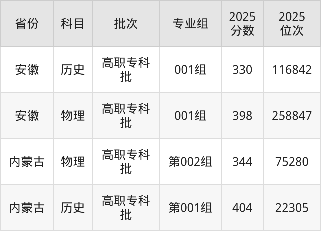 渭南职业技术学院第001组:2025年投档录取最低分为404分,录取最低位次为22305名。