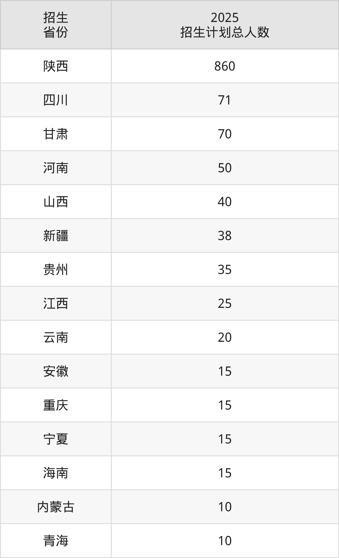 2025年渭南职业技术学院面向全国15个省市开展专科招生;招生专业共41个,招生人数共1289人。2025年在陕西省招生计划总人数是860人,其中,渭南职业技术学院在陕西省招生人数最多的是中医学。渭南职业技术学院在各省具体招生人数情况如下表。