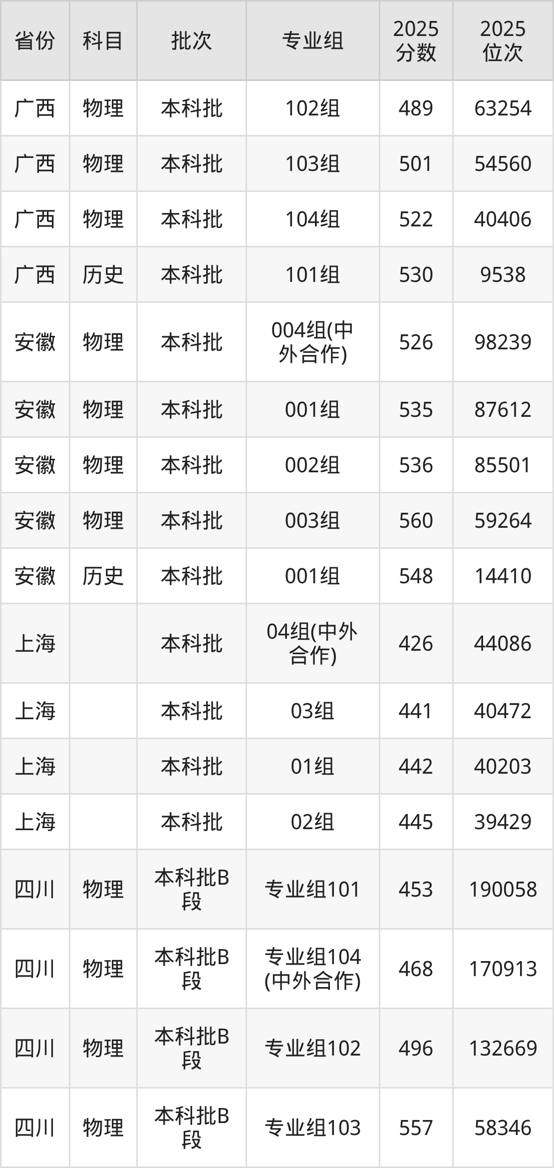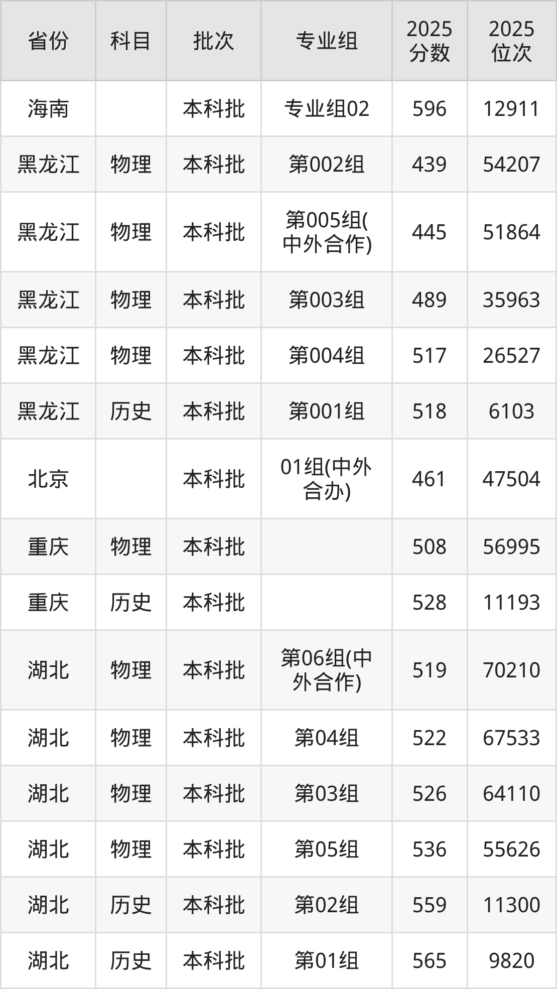 普通类本科物理类最低489分,本科历史类最低530分