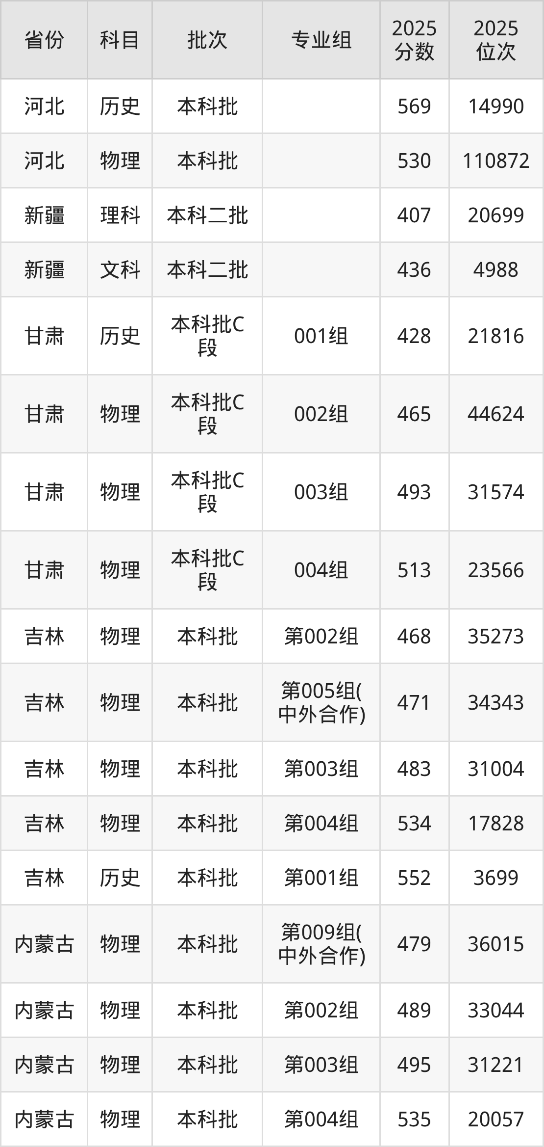 普通类本科物理类最低492分,本科历史类最低521分