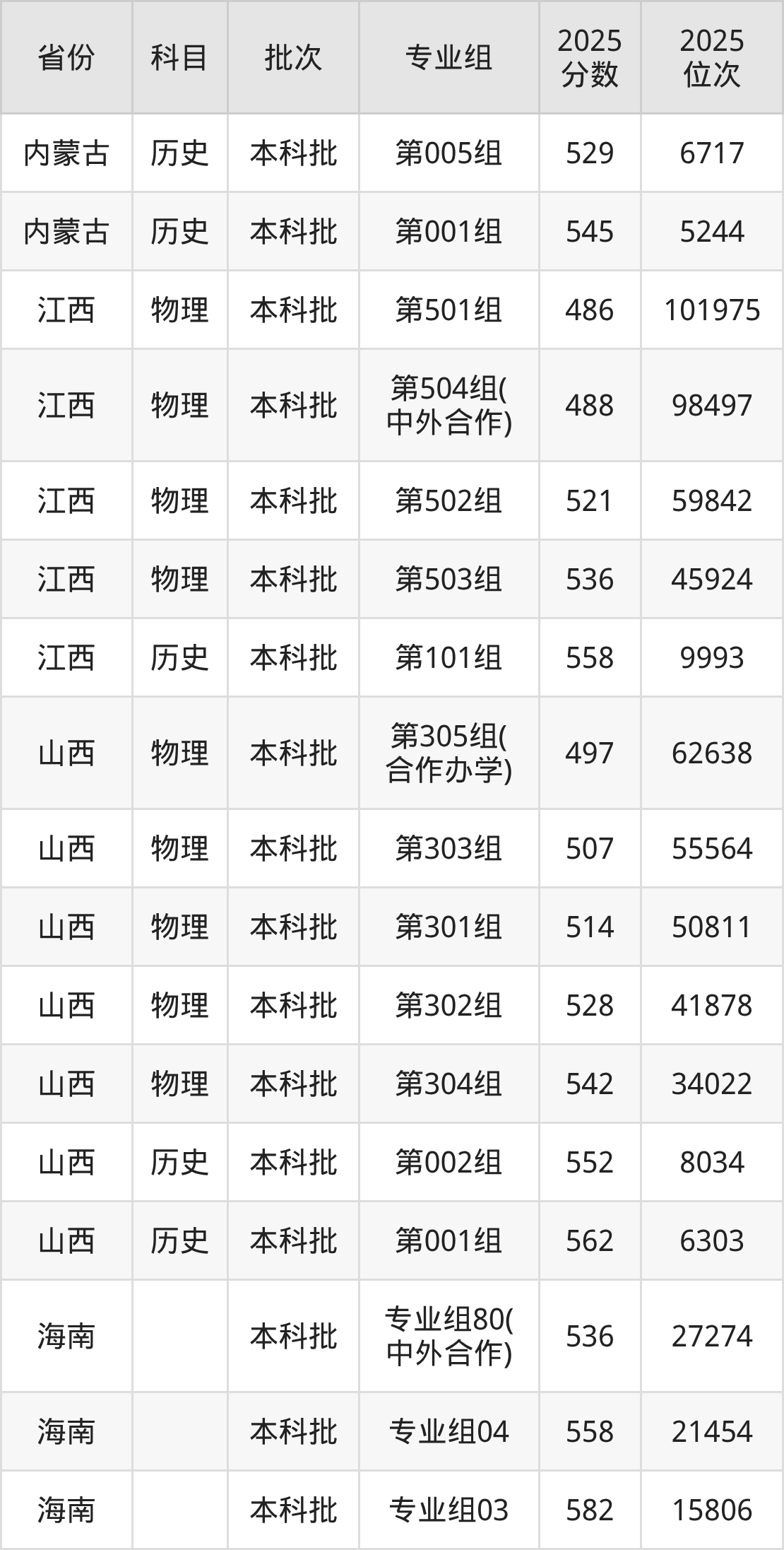 食品科学与工程(中外合作办学):2025年投档录取最低分为539分。
