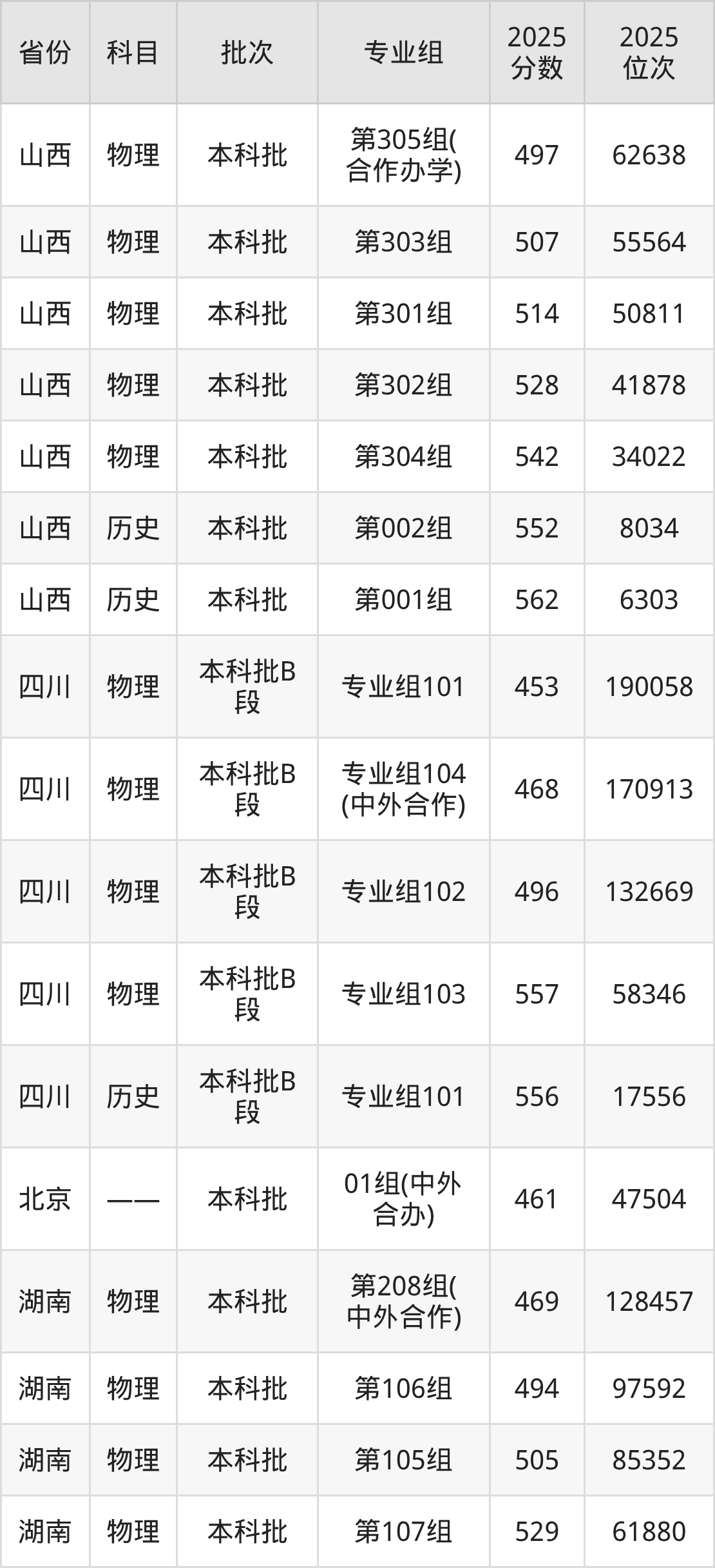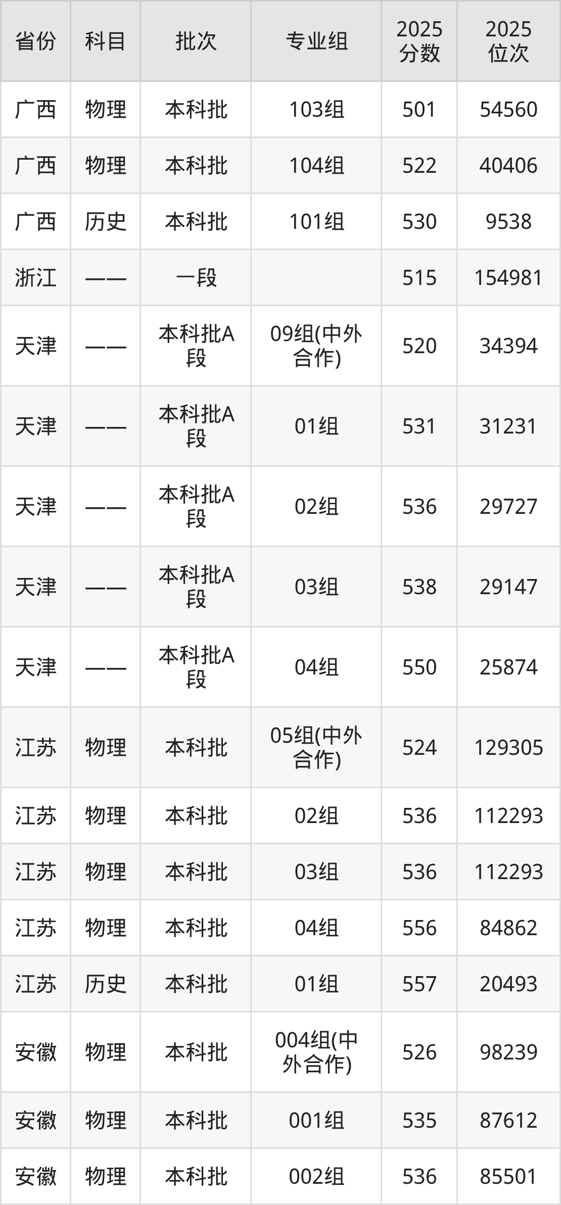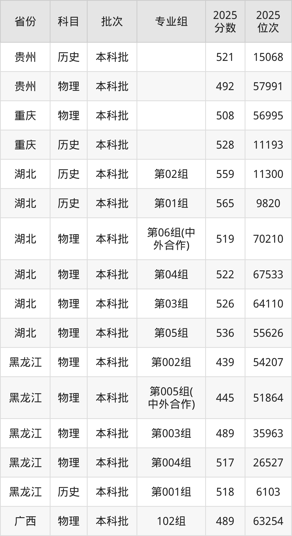 普通类本科历史类最低547分,本科物理类最低495分