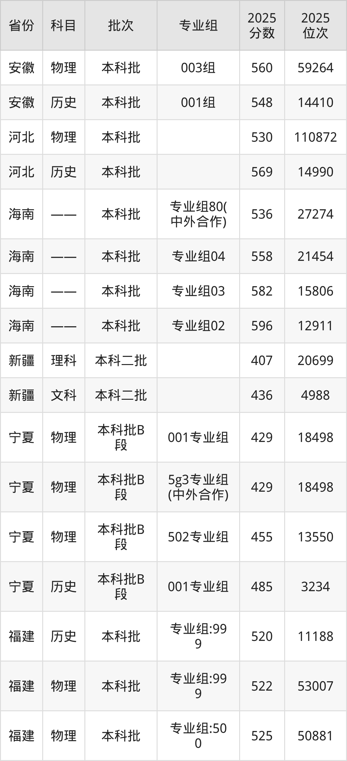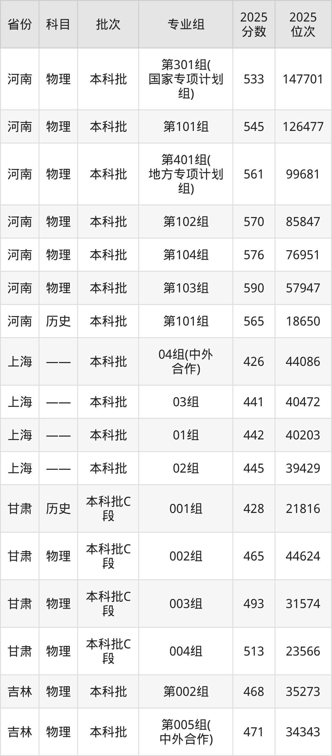 普通类本科物理类最低486分,本科历史类最低558分