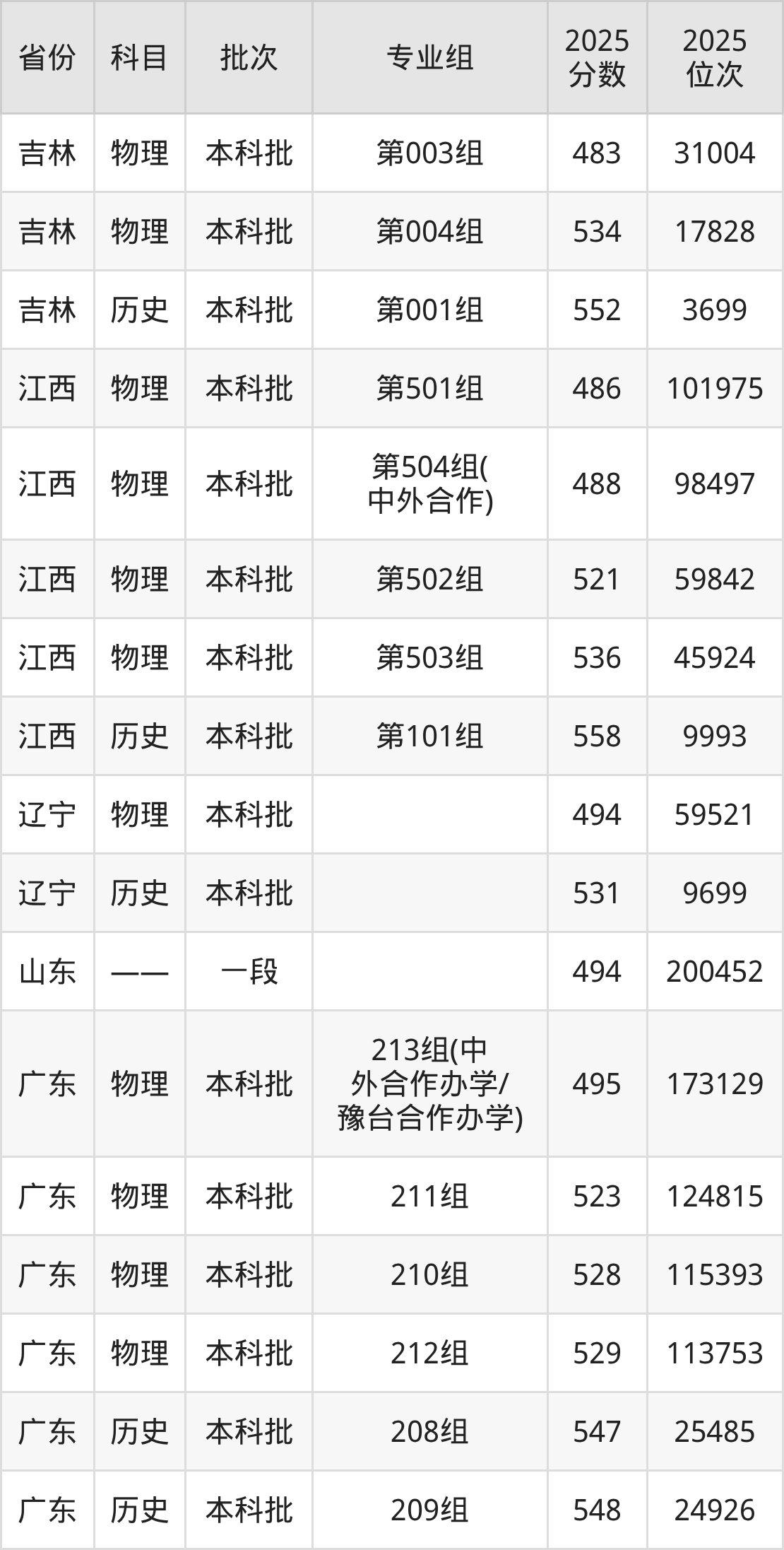 2025年投档录取最低分为494分,录取最低位次为59521名。