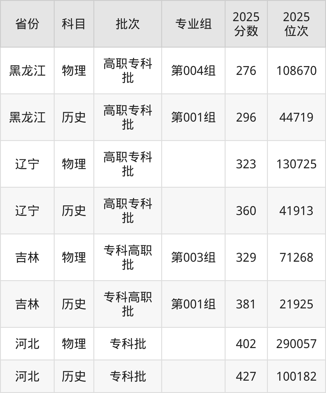 黑龙江冰雪体育职业学院第003组:2025年投档录取最低分为329分,录取最低位次为71268名。