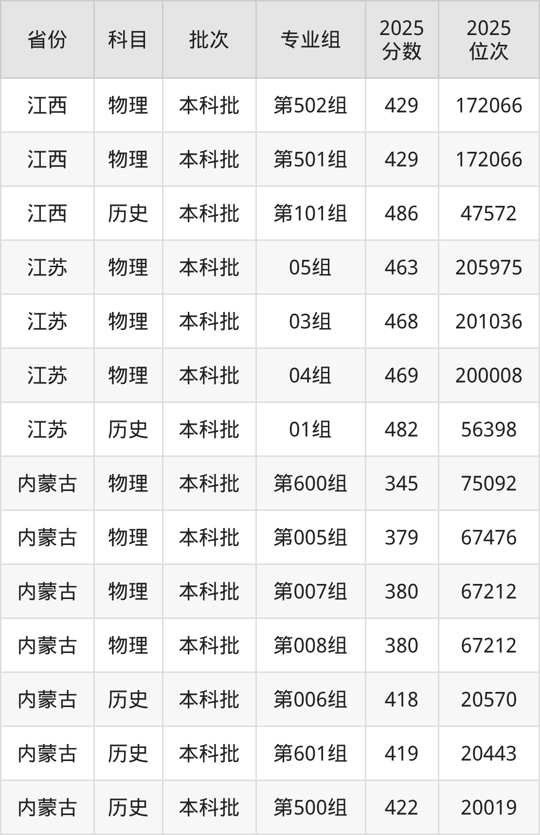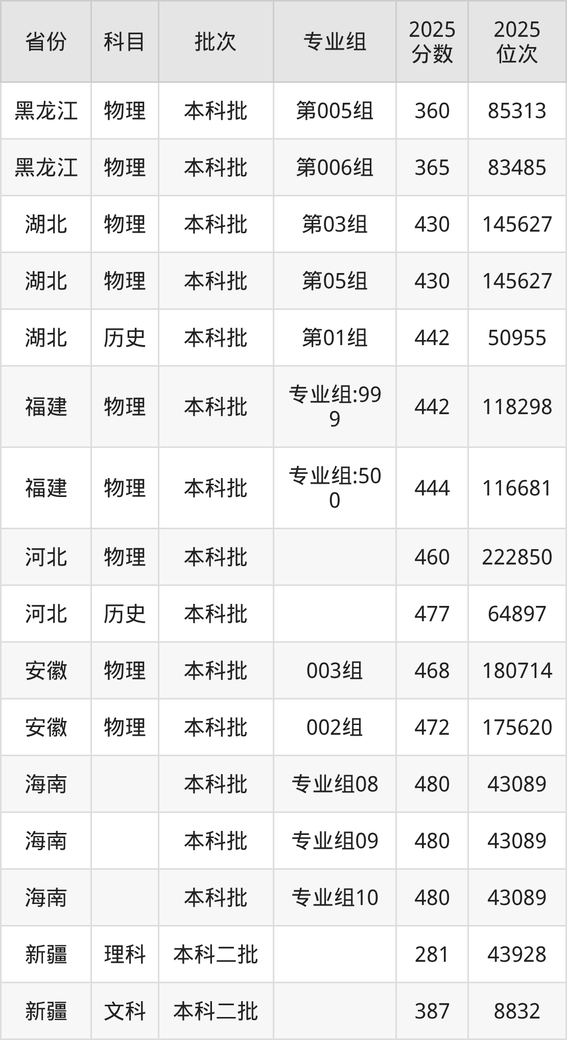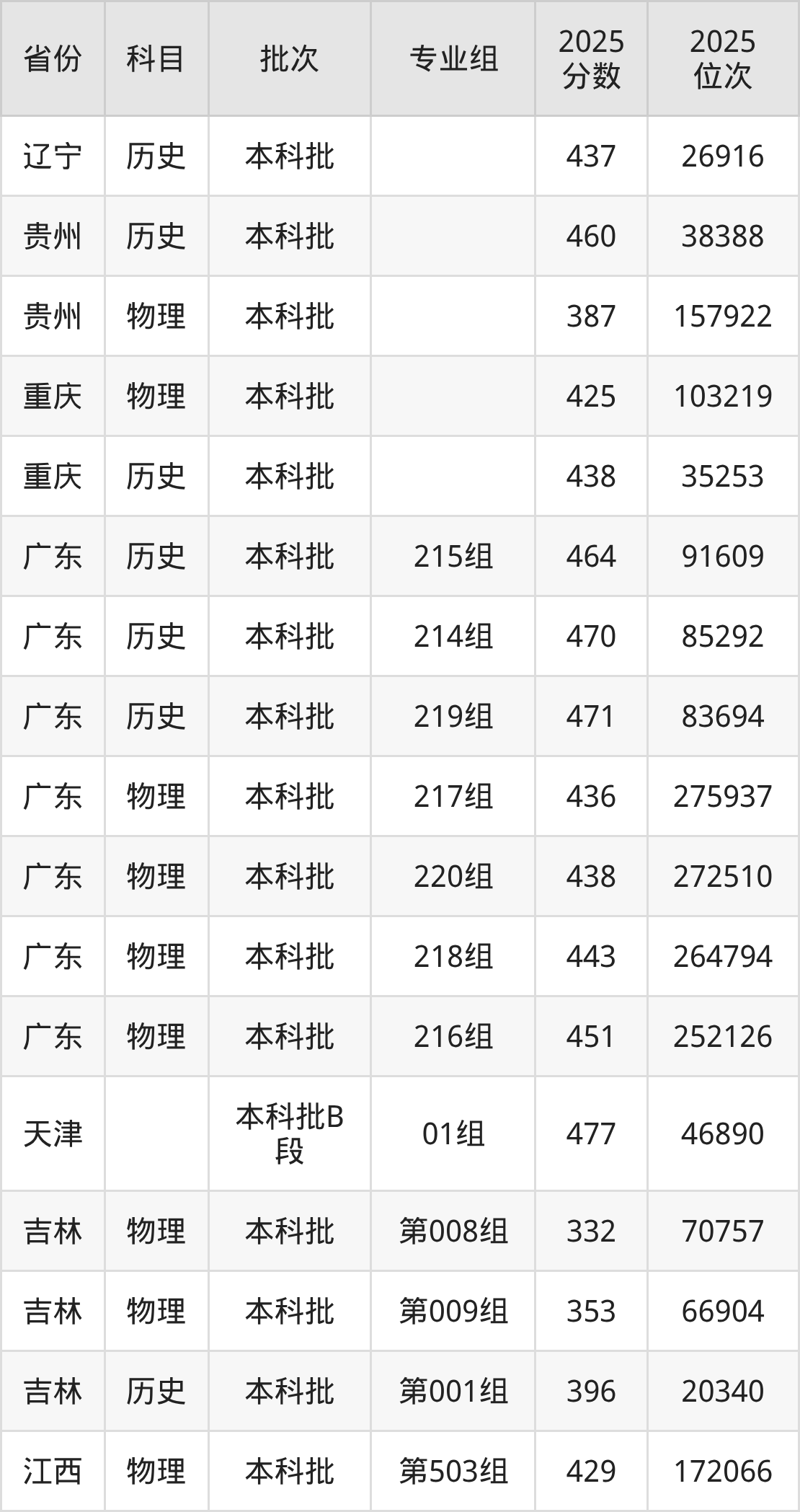2025年投档录取最低分为425分,录取最低位次为103219名。
