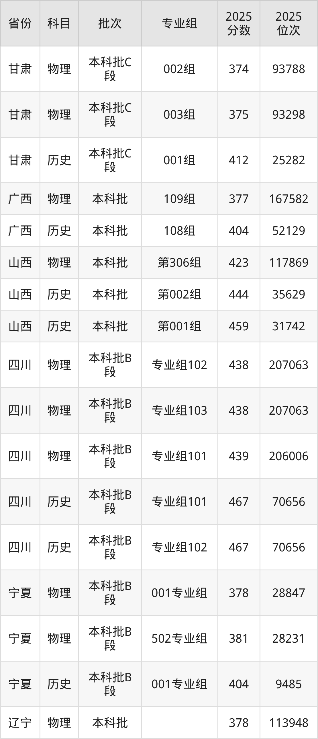 2025年投档录取最低分为378分,录取最低位次为113948名。