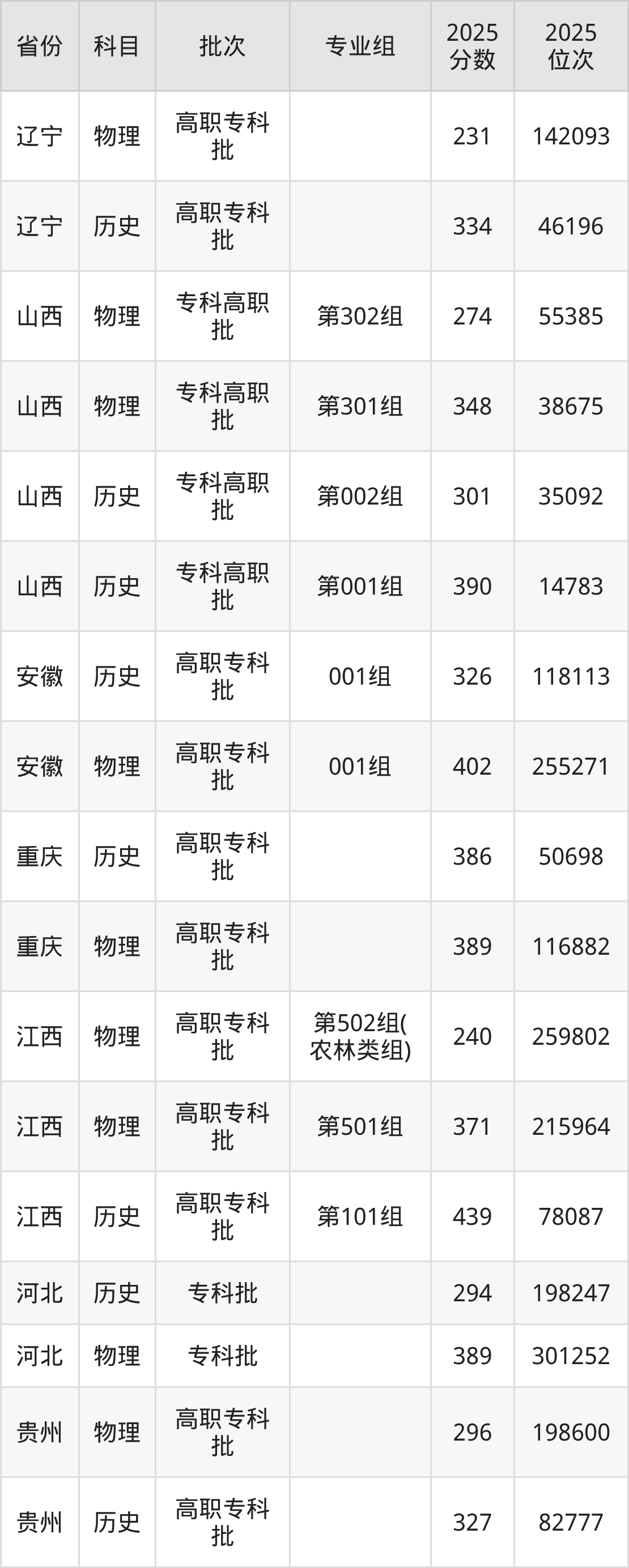 下面是2025年云南林业职业技术学院全国录取分数线一览表,请查阅。