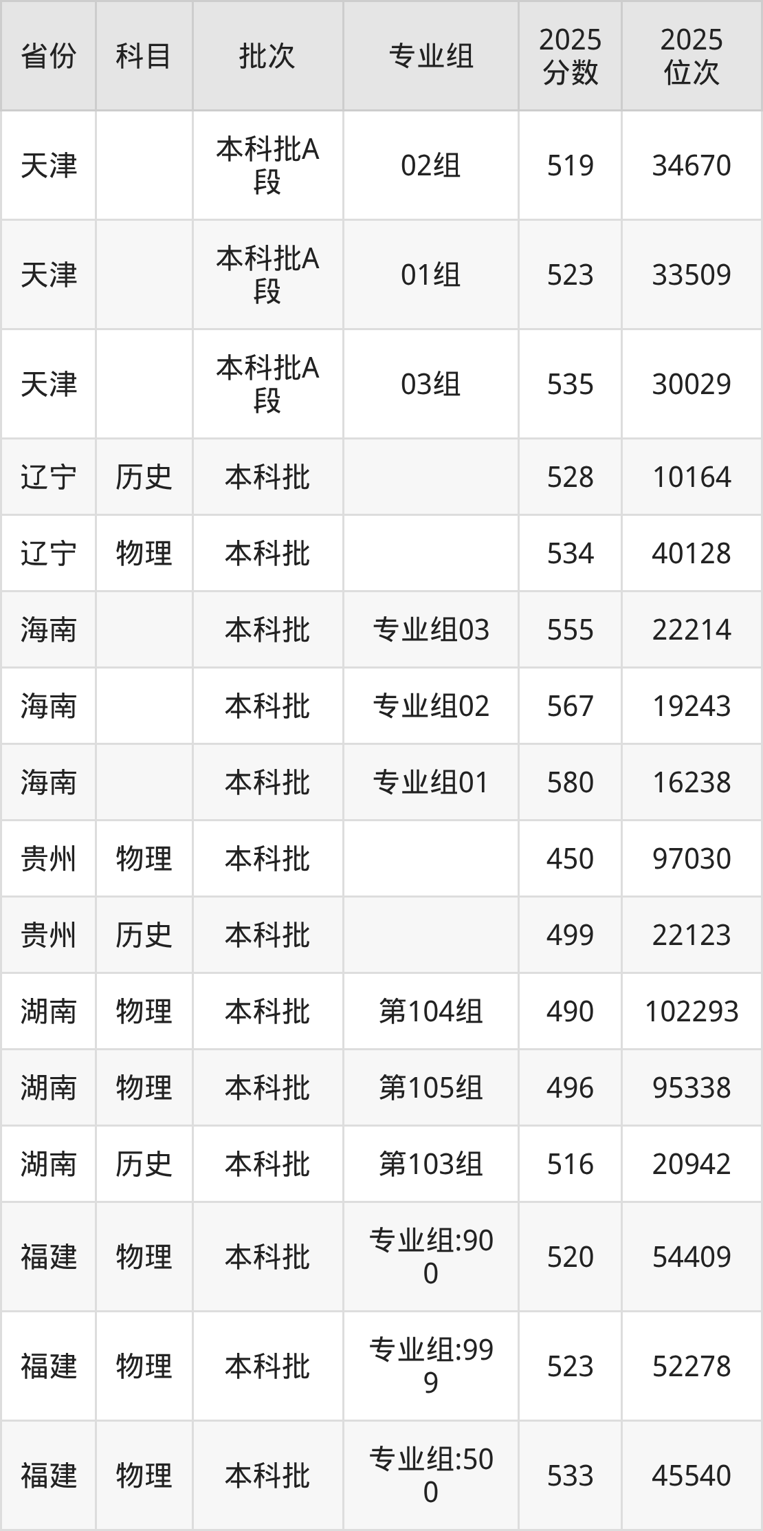 2025年投档录取最低分为519分,录取最低位次为13219名。